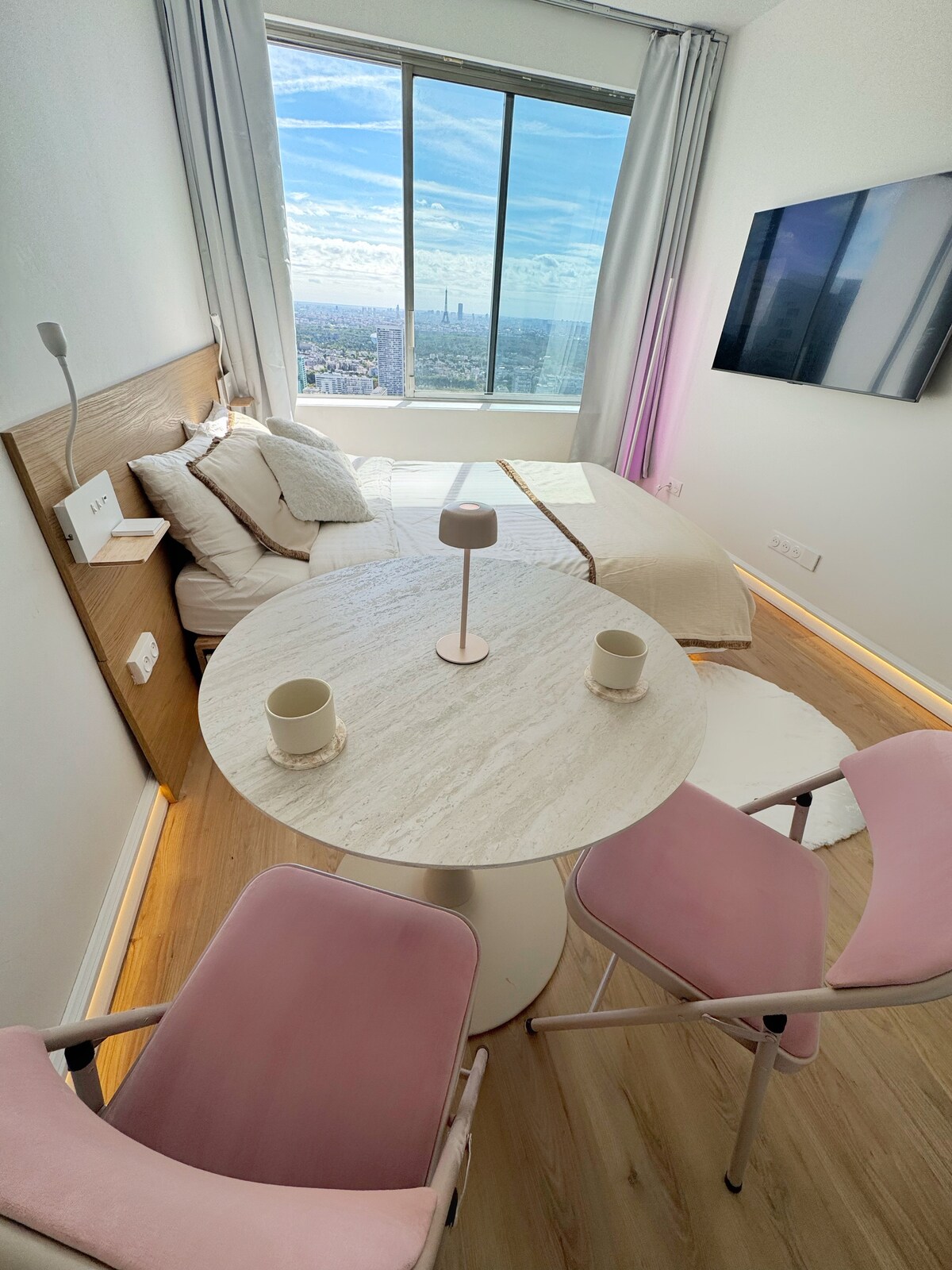 Discover a unique haven high above the Paris skyline. This Japanese-inspired space combines minimalist design with breathtaking views of the Eiffel Tower and the city’s rooftops. Perfect for a peaceful getaway, the apartment offers: 🌿 A serene, shoji-style interior designed for calm and clarity 🗼 A wide window framing the Eiffel Tower in all its beauty 🛋 A cozy seating nook to relax, read, or enjoy tea with the skyline as your backdrop This Zen-inspired home will make your stay unforgettable.