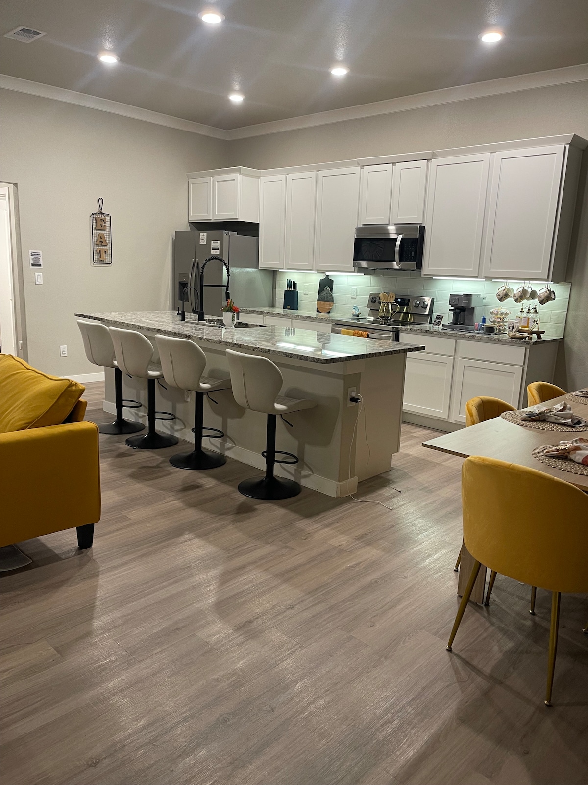 Bem-vindo à nossa moderna casa de esquina, ideal para famílias, perfeitamente localizada perto de tudo! A poucos minutos da autoestrada, Walmart, H-E-B, parques e muitos ótimos locais de comida, este retiro tranquilo facilita as tarefas e os passeios. Desfrute de uma estadia confortável e inspirada no luxo com camas acolhedoras e espaços relaxantes. Os hóspedes têm estacionamento gratuito no local e uma entrada espaçosa com espaço para vários carros. Quer esteja aqui para trabalhar, em família ou para uma escapadela rápida, esta é a sua base conveniente.
