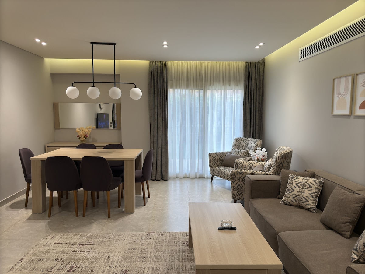 Apartamento elegante de 3 quartos recém-mobiliado, a poucos minutos dos principais pontos turísticos do Egito, as Pirâmides. Apenas a 5 minutos do Grande Portão das Pirâmides, a 10 minutos do Grande Museu Egípcio, a 5 minutos do Dream Park e perto de todos os transportes. Perfeito para famílias, viajantes de negócios e turistas. Wi-Fi rápido, ar condicionado em todos os quartos e varanda privada com vista para a estrada.