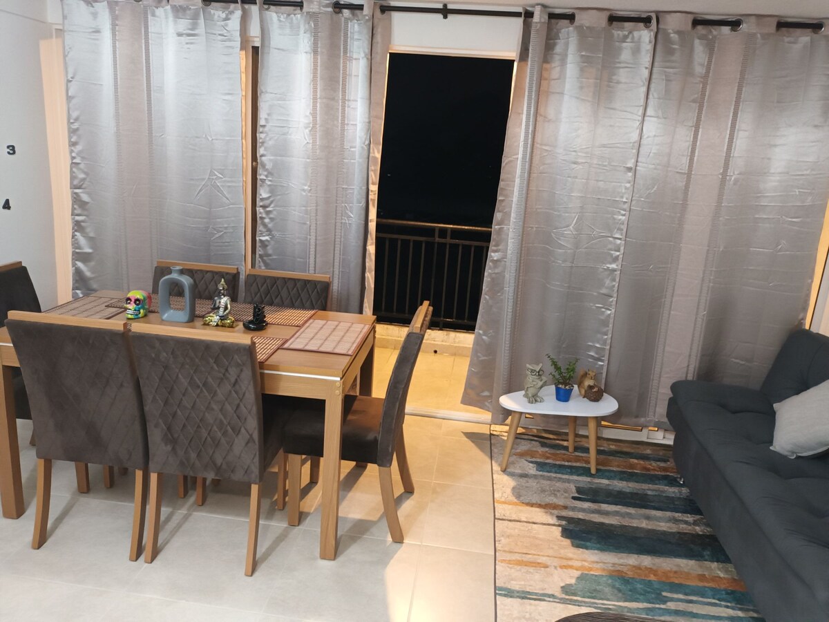 Apartamento nuevo en el sector norte de Popayán, con excelente iluminación linda vista, una decoración acogedora y moderna ; cuenta con tres habitaciones: la principal con cama doble y baño privado ,las otras con cama sencilla, un sofacama doble, cocina integral, sala comedor, balcón, zona de ropas, smartTV Wifi, parqueadero cubierto. El edificio tiene piscina, cancha de squach, gimnasio, salón social, cercano a centros comerciales, supermercados y restaurantes. Ideal para cuatro personas.