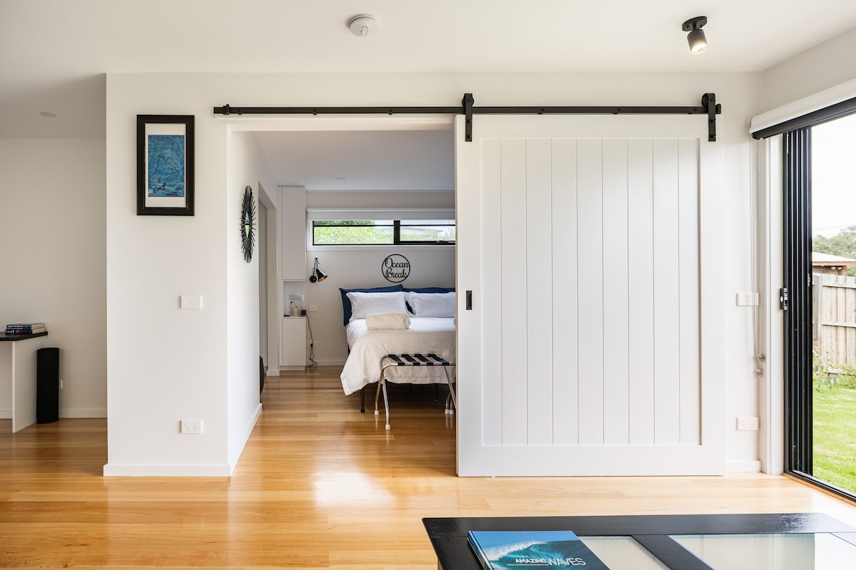 Ocean Break: location and style. Comfy bedroom, chic bathroom and separate, spacious, living/dining area. Peaceful, secure, unique location, fronting the ocean. Wander out the front gate and straight onto Surf Coast Walk, where magnificent coastal views can be enjoyed immediately. A 200 metre stroll to Jan Juc village and its eateries, hotel and general store, and just a few minutes more to Bird Rock look out, overlooking Jan Juc beach. A 5-7 minute drive to central Torquay or Bells Beach.