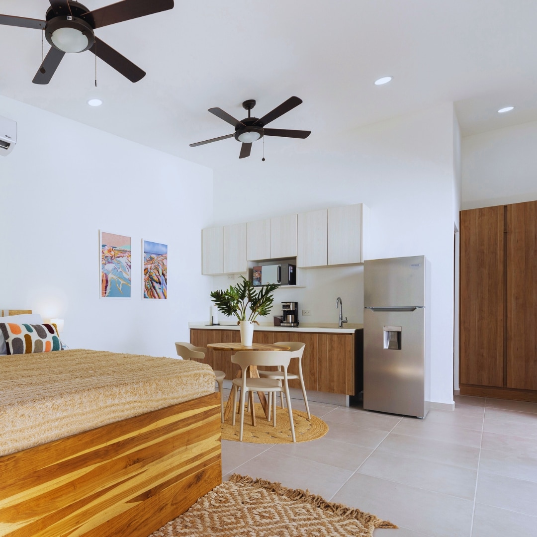 O nosso elegante apartamento estúdio fica no coração de Dominical! Com uma cozinha completa, uma cama queen, um sofá-cama e um teto inferior único na cozinha, é o lugar perfeito para um casal, um viajante solitário ou uma pequena família desfrutar do que Dominical tem para oferecer! Fica a 5 minutos a pé da praia e é um local seguro e confortável para passar as suas férias! Venha surfar nas ondas de alto desempenho de Dominical, desfrutar das nossas belas praias, participar nas muitas atividades de aventura que oferecemos ou simplesmente relaxe!