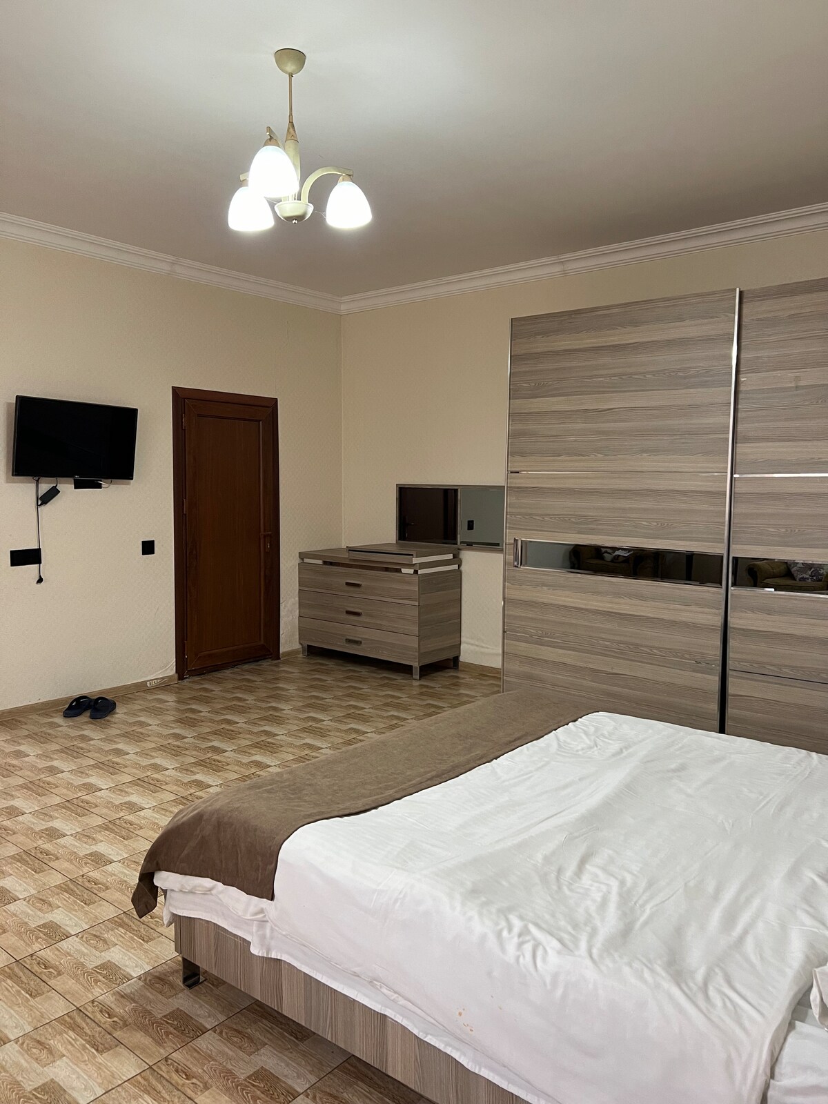 This private designer home in Enig offers stunning mountain views and is just 7 minutes from Shahdag. Set on a 1,500 sqm plot, it combines privacy with comfort. The house has 3 bedrooms, 2 bathrooms, a terrace, heated floors, generator, Wi-Fi, Smart TV, karaoke, 2 AC, washing machine, BBQ, fire pit, swings, and board games. Brand new, high-quality interiors. Sleeps 6 comfortably, up to 10 guests.