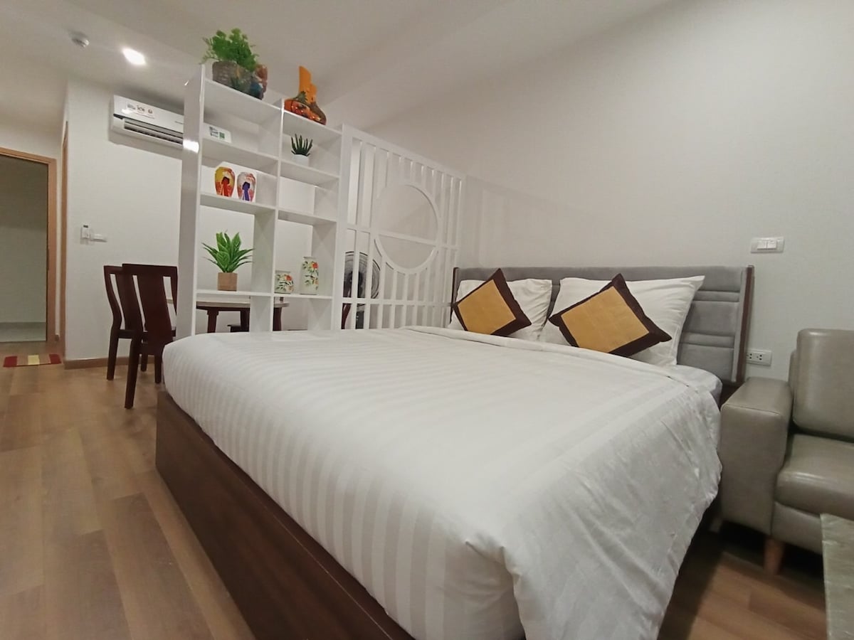 Bem-vindo a um retiro relaxante à beira-mar no coração de Quy Nhon! Este estúdio moderno e acolhedor com varanda com vista para o mar está localizado dentro do TMS Quy Nhon - Hupasearest - a apenas 2 minutos a pé da praia. Ideal para casais, viajantes individuais ou viajantes de negócios que procuram um espaço limpo e totalmente mobilado como a sua própria casa. 🛏️ O estúdio está equipado com: 1 cama king-size confortável. Ar, Wi-Fi, Smart TV. Kitchenette com frigorífico, utensílios de cozinha. Casa de banho privada com água quente