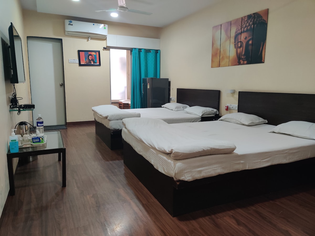 Welcome to Our Cozy AC Retreat Nr the Airport! Just 250 meters from the airport, our space offers the perfect mix of comfort and convenience. Enjoy a relaxing bathtub, and thoughtful touches. Ideal for business, solo travelers, couples, or families.Enjoy ur stay with induction , Toaster , Egg Boiler ,Fridge, Tv ,Microwave ,Tea & Coffee . We provide flexible check-in, high-speed Wi-Fi, and additional Futon Bed for kids(Chargable) . Our location is close to dining, shopping,and local attractions.