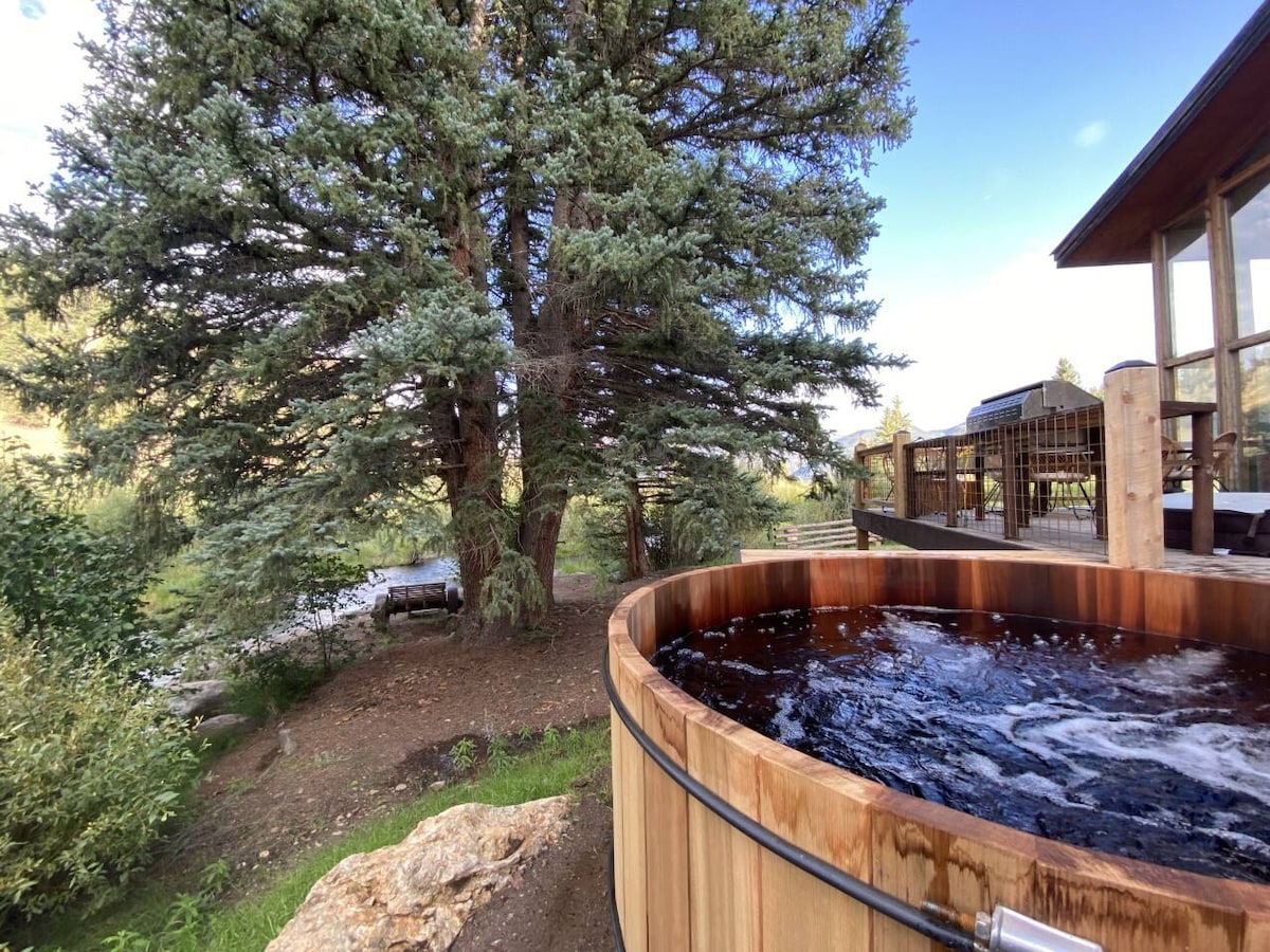 Cabana "Streams & Dreams" à beira do rio com banheira de hidromassagem