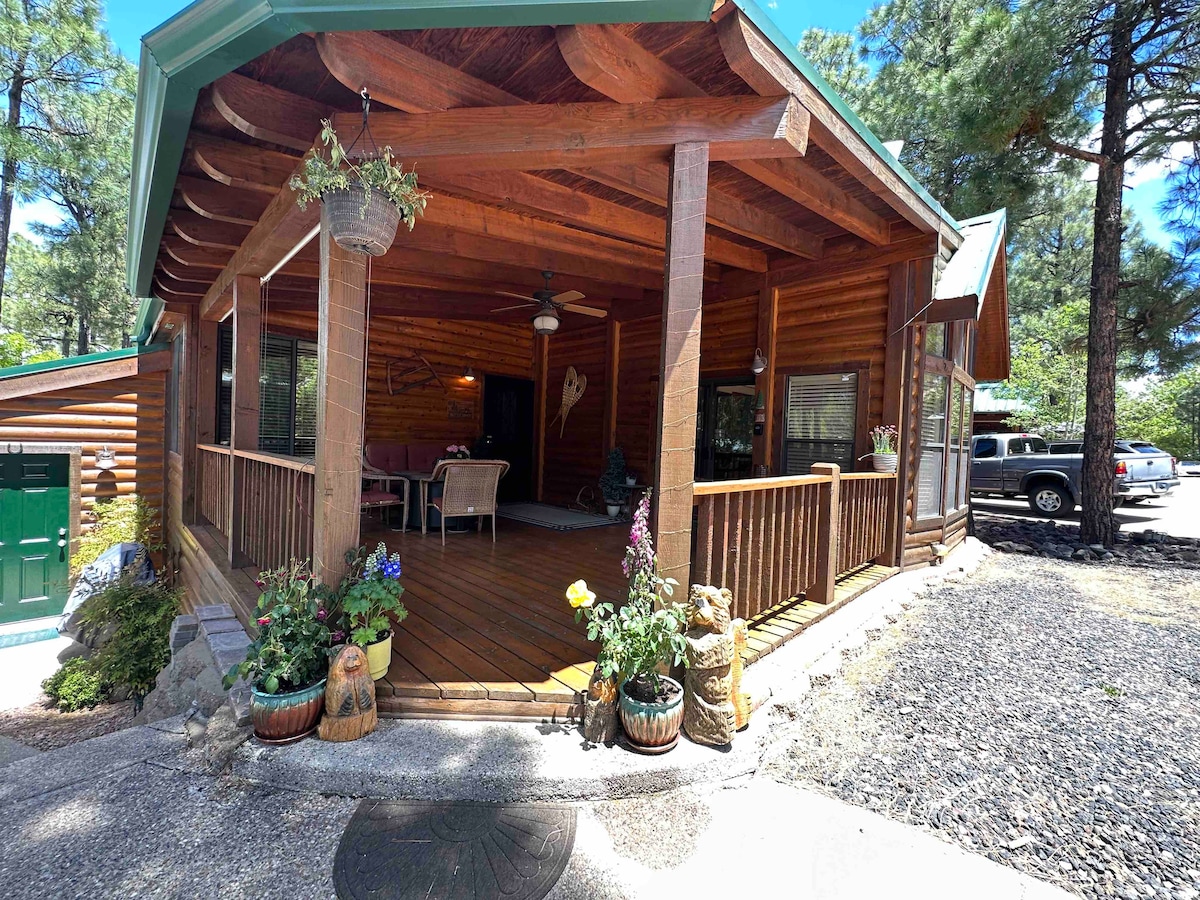 Delicie-se com a tranquilidade de Pinetop nesta cabana de madeira de 3 camas + loft, 1,5 banheiro cercada por árvores altas e aninhada em uma comunidade tranquila que faz fronteira com a floresta perto de ótimos restaurantes, caminhadas, ciclismo, pesca, esqui e muito mais! O início da trilha para o Woodland Lake Park está localizado a poucos passos da propriedade. Desfrute de manhãs saboreando café na varanda enquanto as crianças brincam no play set. Passe noites com jantar na grelha, aconchegue-se perto da lareira/TV e asse s'mores ao redor da fogueira. Wi-Fi de alta velocidade!