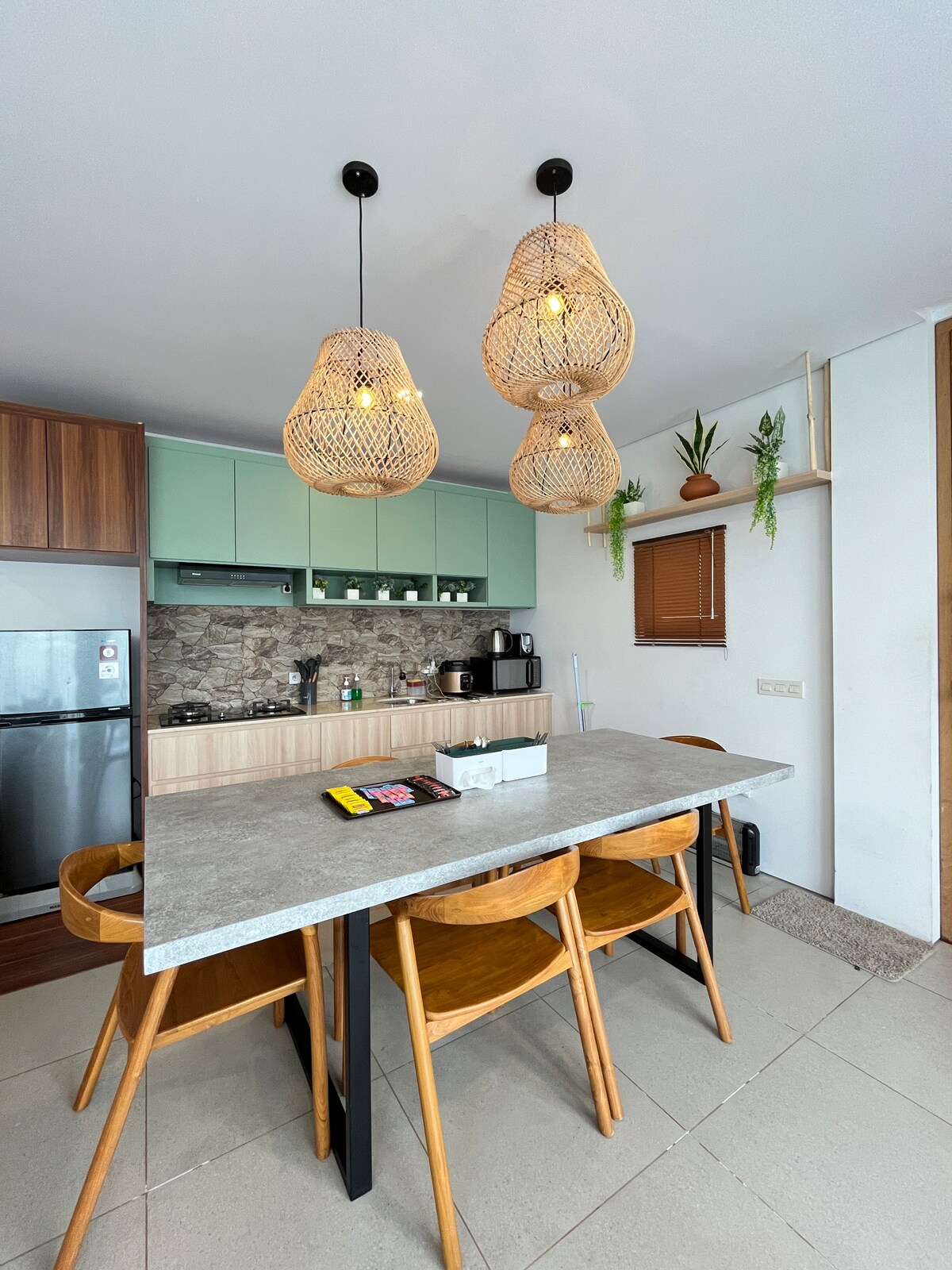 Desfrute de uma nova casa com um design moderno e minimalista no 2º andar do complexo Tamanari. Tem acesso próprio à área do Airbnb. Localizado em um ambiente tranquilo e silencioso, mas bem no centro da cidade. Apenas 2 minutos a pé da rua Riau e do centro de cafés e restaurantes na rua Anggrek e na rua Nanas. O andar de cima do Tamanari tem instalações completas com 2 quartos e 1 banheiro, além de uma cozinha completa, que pode facilitar e proporcionar conforto durante a sua estadia em Bandung