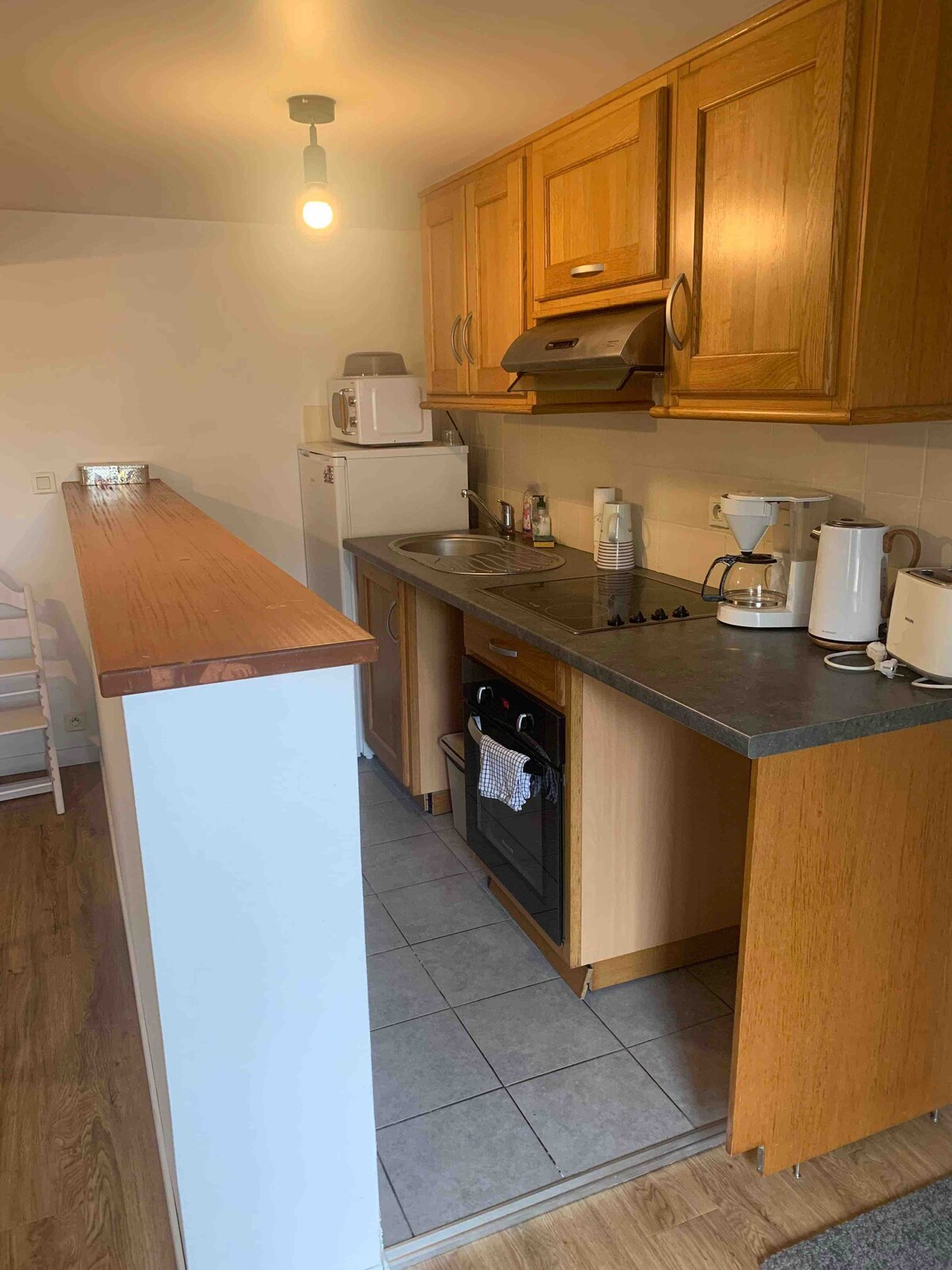 Espaçoso apartamento de 47 m2 com quarto, casa de banho e WC separado. Equipado com roupa de cama de qualidade: uma cama de 180 cm e um sofá-cama de 140 cm. Sem taxa de limpeza, pedimos-lhe que retire os caixotes (encontrará contentores nos parques de estacionamento no centro da cidade), faça e guarde os pratos usados e desembale as camas. Por favor, note que não fornecemos toalhas para uma estadia de uma noite. Possível de alugar, 2 euros o grande, 1 st o pequeno.
