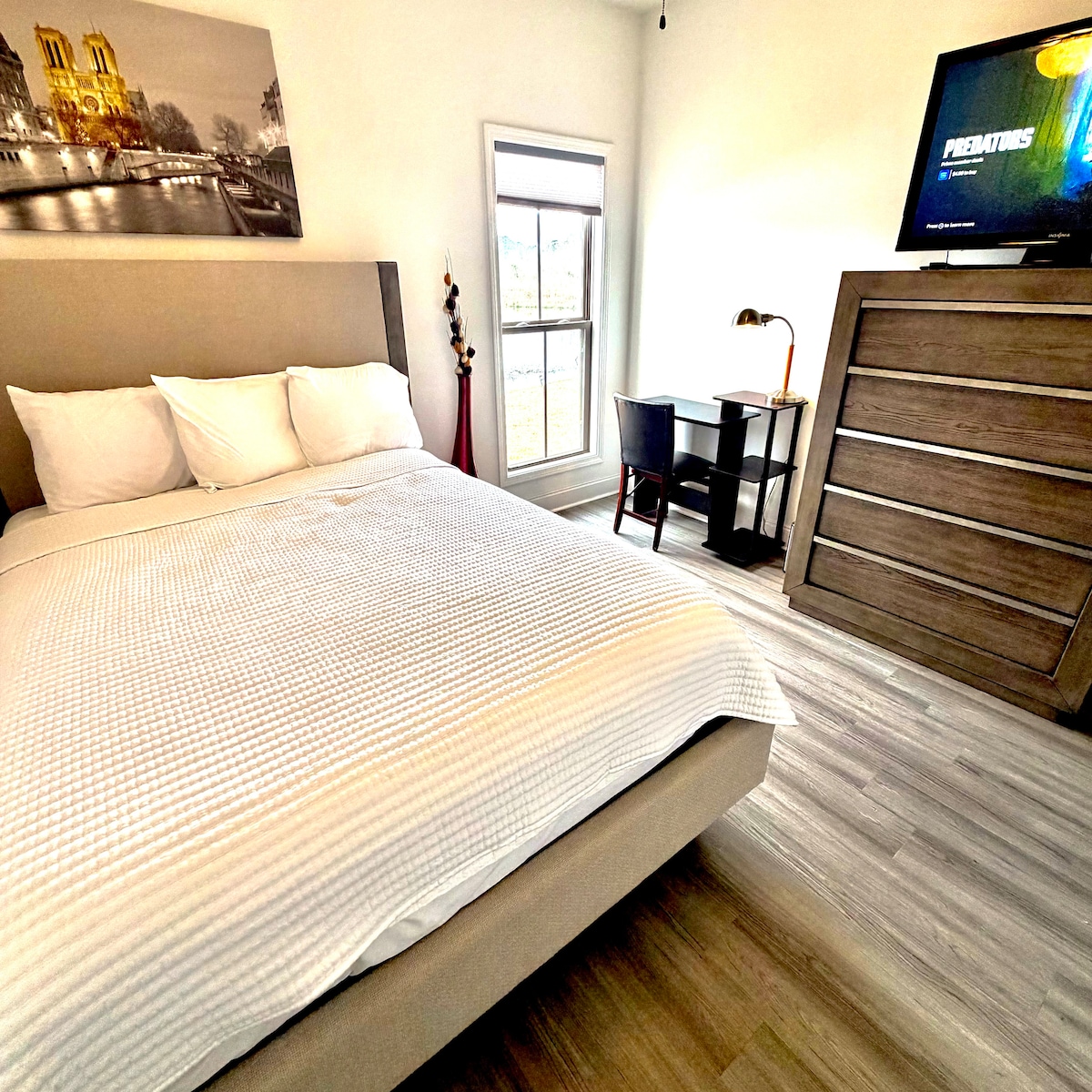 Enjoy a stylish experience at this centrally located lake house. Red, White, and the Delta Blues – Enjoy the Townhome near the Ross Barnett Reservoir is perfect for lake days, music lovers, and city explorers alike. Close to shopping, dining, and the Brandon Amphitheater, it’s ideal for business or pleasure. Featuring a high-end keyboard and guitar, this Mississippi Delta Blues-themed retreat is a musician’s dream and the ultimate base for relaxation, rhythm, and good times.