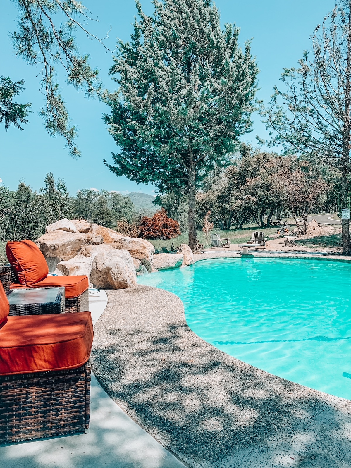 ATUALIZAÇÃO: Novo espaço no quintal! Partilhamos 10 acres de Coarsegold Creek com vida selvagem em abundância. A entrada de Yosemite fica a 54 minutos de carro, mais 50 minutos até ao fundo do vale. Paragem perfeita para viagens a Mother Lode ou Yosemite, numa localização central para viagens por toda a Califórnia. A piscina/jacúzi da propriedade é um refúgio perfeito! O nosso estúdio é separado da casa principal, situado nas traseiras da garagem (26 × 8 pés, com cama de casal, sofá-cama individual, micro-ondas, frigorífico, café, casa de banho privativa). É proibido fumar. Dicas de viagem locais/imagens em Tinyurl.com/yosoresort