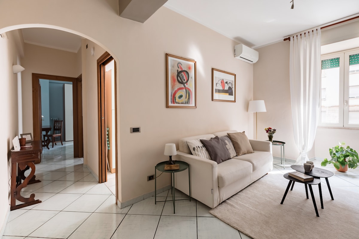 A poucos passos do Coliseu, Circus Maximus, Caracalla, San Giovanni. Um apartamento muito luminoso e tranquilo de 807 pés quadrados. Nos terraços de Roma, finamente e inteiramente renovado em abril de 2019. Sala de estar com cozinha, dois quartos (um king-size com banheiro privativo e o outro com duas camas de solteiro), um banheiro principal, além de um sofá-cama duplo francês. Smart TV com Netflix incluída, tanto na sala de estar quanto nos 2 quartos. Wi-Fi gratuito. Check-in das 15h às 21h. Check-out: 11h.