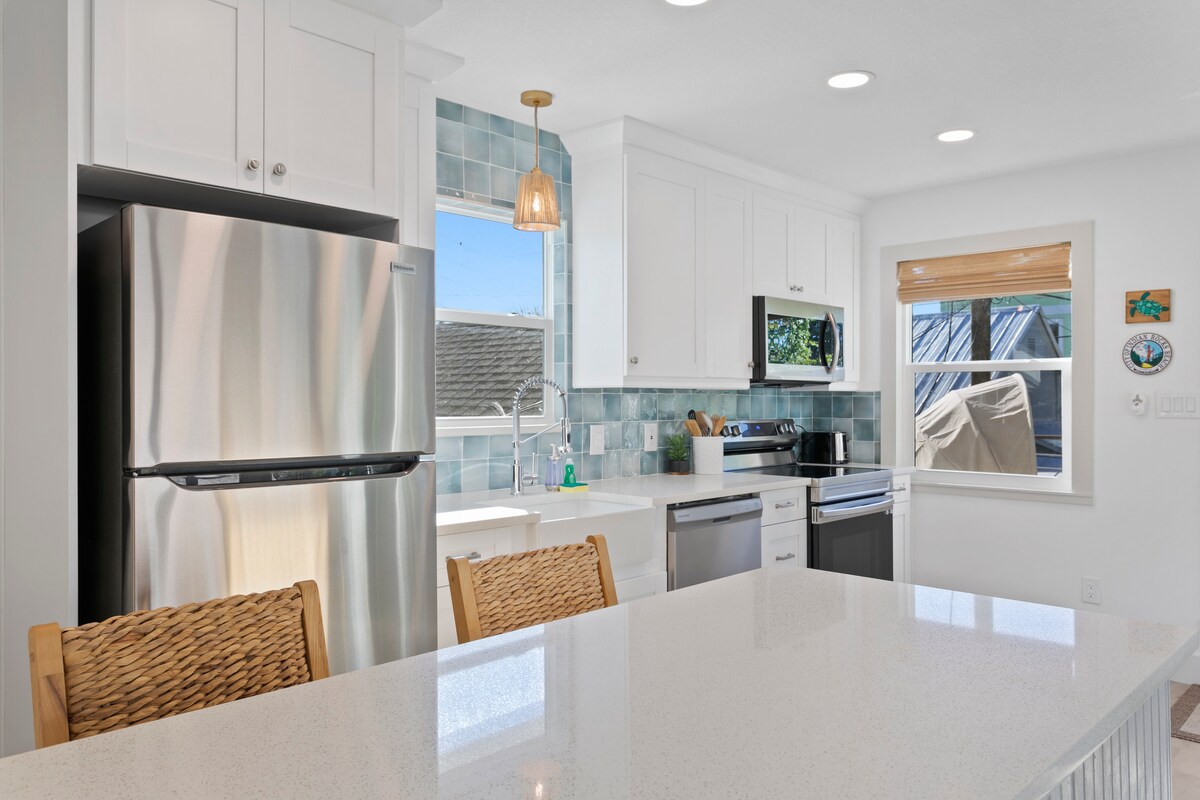 3 MIN A PÉ DA PRAIA. Casa de praia, 2 quartos, 1 banheiro, cozinha bem equipada, camas Beautyrest, muito limpa. Tudo incluído, 4 cadeiras de praia, um cooler, brinquedos de praia, 18 toalhas: 4 de praia, 4 de chuveiro, 4 de mão, 4 de rosto, 2 toalhas de cozinha, sem escadas, estacionamento para 4 carros, área de estar ao ar livre + jantar, churrasqueira a carvão, lavanderia privativa gratuita, Internet de alta velocidade 200 megabytes, TV a cabo, Wi-Fi, curta caminhada até o campo de beisebol/pickleball/ tênis/ basquete/ skate, sem degraus.