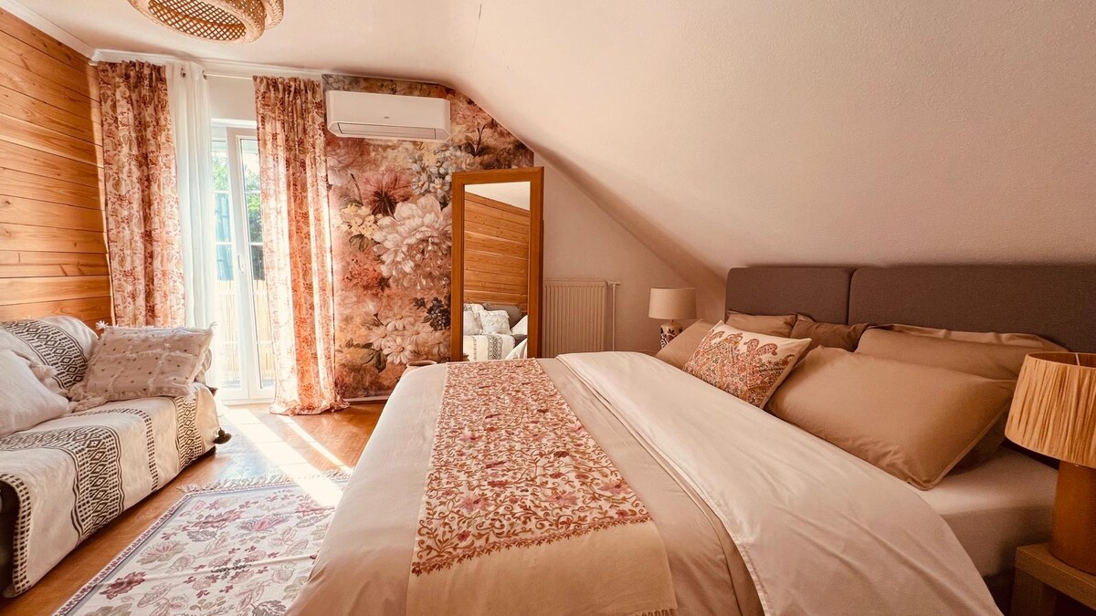Belo e espaçoso apartamento de 58m² com uma garagem privada e fechada. O quarto dispõe de uma grande cama de 160 cm, um guarda-roupa grande e uma área de trabalho. A sala de estar convida-o a relaxar com um sofá de canto que se transforma numa cama de casal. Também encontrará uma televisão grande para noites de cinema e uma mesa de jantar para quatro pessoas. A cozinha está totalmente equipada para preparar refeições deliciosas.