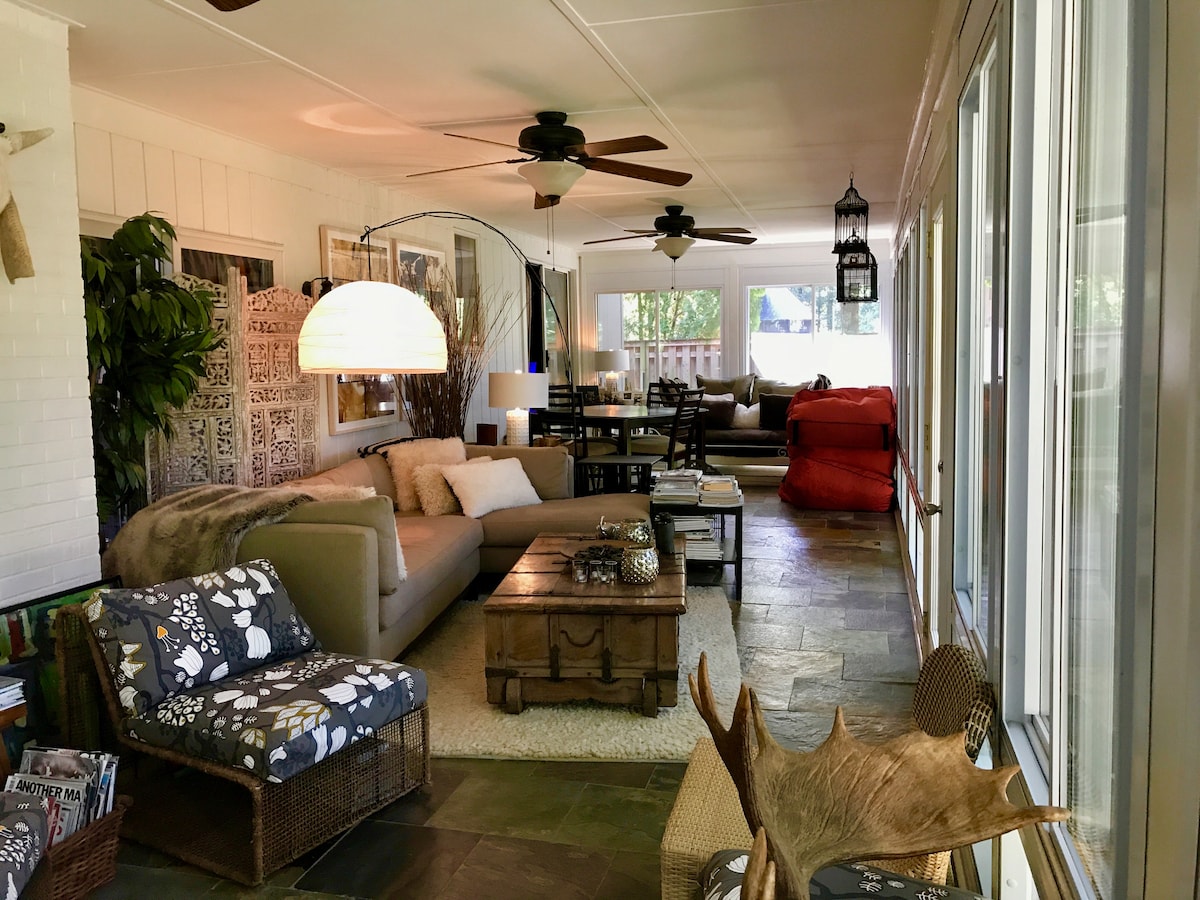 Peças contemporâneas misturadas com decoração rústica criam uma sensação descontraída e eclética na grande sala. Os 2 quartos têm um estilo spa-romântico num quarto (cama queen nova!) e uma sensação de viagem elegante no outro (cama queen). Esta é uma suíte privada de um andar com uma entrada separada. Casa de banho completa e cozinha simples em estilo galé. Estou aninhado a 800 metros de uma estrada secundária num terreno arborizado de dez acres. Muita vida selvagem e extremamente tranquilo, uma escapadela perfeita!