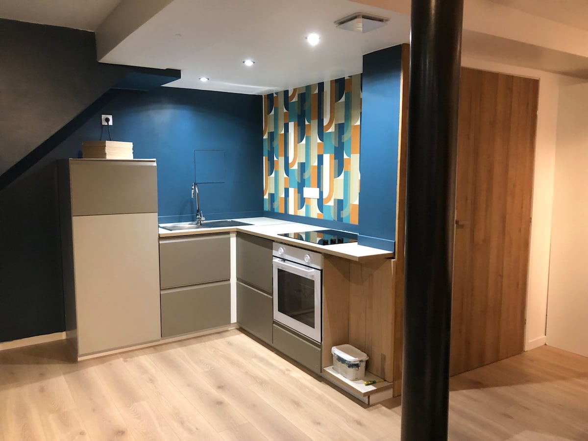 Relaxe neste lugar único e tranquilo. Contém todas as comodidades de conforto úteis e necessárias. Pode vir com os seus pertences, é tudo o que precisa:) (Pacote de boas-vindas incluído). Piso de betão encerado, muito brilhante, uma verdadeira cozinha equipada, sofá conversível numa cama e 160 x 200 camas