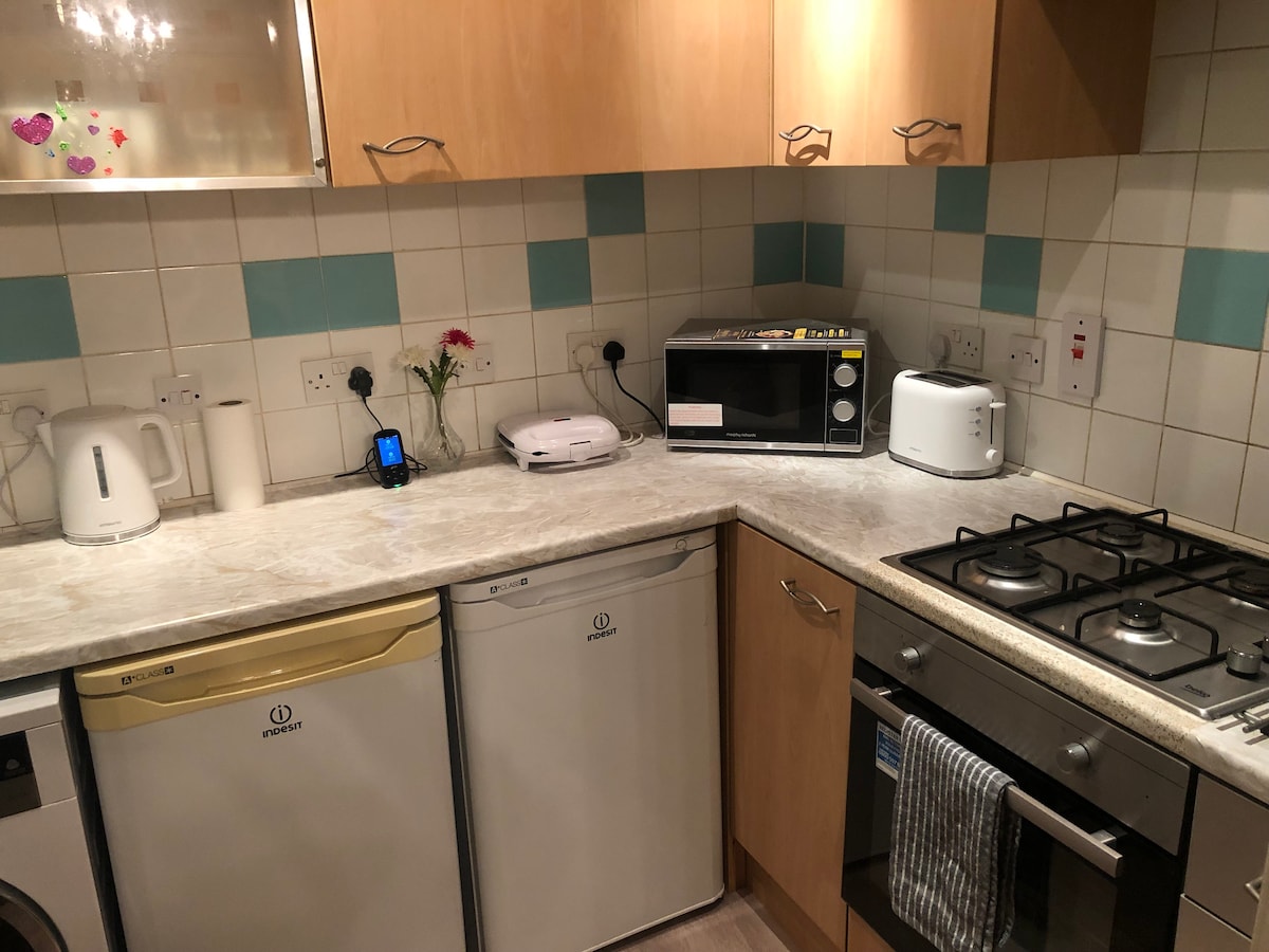 Lindo apartamento de 2 quartos no primeiro andar numa zona tranquila na cidade de Johnstone. A estação ferroviária fica a 2 minutos a pé, com o centro de Glasgow a apenas 2 paragens de distância. O aeroporto de Glasgow fica a 10 minutos de carro e a 25 minutos do Lago Lomond, a 15 minutos da cidade de Glasgow e a 1 milha da autoestrada M8. Está a poucos minutos de muitos restaurantes e supermercados muito bem avaliados, todos a uma curta distância a pé, roupa de cama, toalhas, acesso Wi-Fi gratuito, televisão de 50 polegadas com acesso gratuito à Netflix e acesso ao Amazon Prime