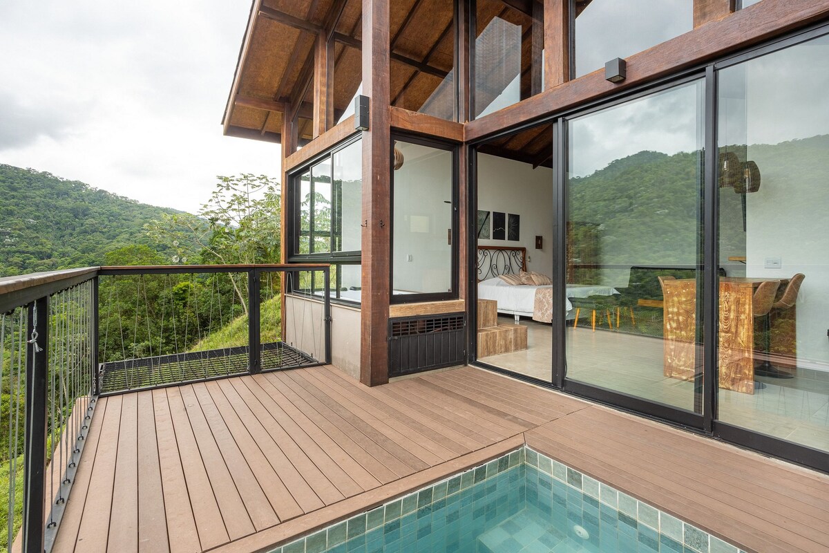 Um refúgio onde a natureza é a grande protagonista. O verde está por todo lado, e o maior presente é poder desfrutar do rio de águas cristalinas e da cachoeira que passa por toda a propriedade e onde é possível mergulhar e contemplar a mata intocada. A casa foi toda construída em madeira e vidro, fazendo com que a claridade e o verde invadam todos os espaços. Dispomos de Internet de qualidade conectada através da fibra óptica,possibiitando desta forma a estadia em home office.