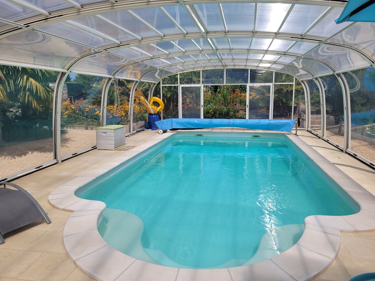 Gîte situé dans le vignoble Bourgueillois. Le gîte comprend une chambre climatisée à l'étage , salon avec canapé et lits superposés adultes, cuisine équipée, salle d'eau, toilettes. Télévisions dans chambre et salon, wiffi. Terrasse extérieure , piscine privée, couverte et chauffée du 07/04 au 17/10 ouverte de 10h à 19h, voir plus sur demande. Emplacement idéal pour découvrir les châteaux de la Loire . A savoir! jeune chienne Malinoise, très affectueuse, présente dans la propriété.