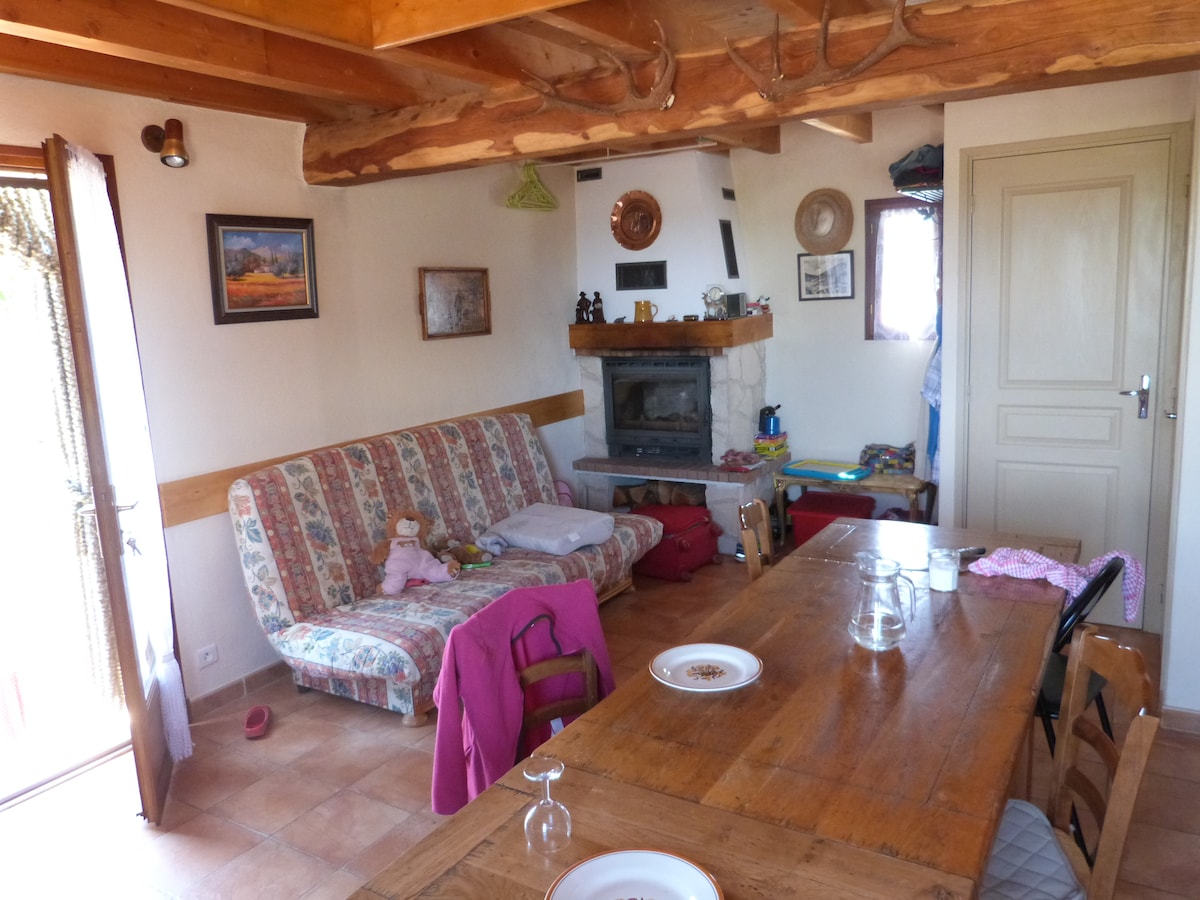 Acomodação incomum em ambiente "hobbit" aninhada no fundo de um jardim selvagem com vista para a cidade. O acesso é feito por uma trilha (íngreme). A acomodação consiste em uma sala de estar com lareira, uma pequena cozinha, um quarto com alcova, um pequeno banheiro, um terraço com vista para o vale e a cidade (a 1 km) e, novidade, um banho aquecido a lenha (exceto no verão) Velas e música estão disponíveis para o clima Ideal para estadias românticas ou momentos fora do tempo!