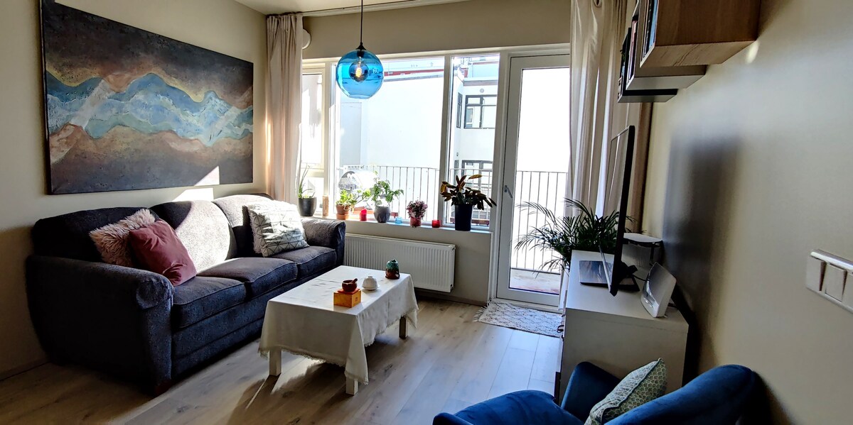 Apartamento bonito e espaçoso em uma localização incrível no centro de Reykjavik. Estacionamento privativo gratuito, vista para o mar e uma varanda. A dois minutos a pé das principais ruas comerciais e restaurantes de Reykjavik. Os pontos de referência próximos incluem a igreja Hallgrimskirkja, a sala de concertos Harpa e a rua comercial Laugavegur. O apartamento foi completamente reformado em 2022 em um design elegante e confortável.
