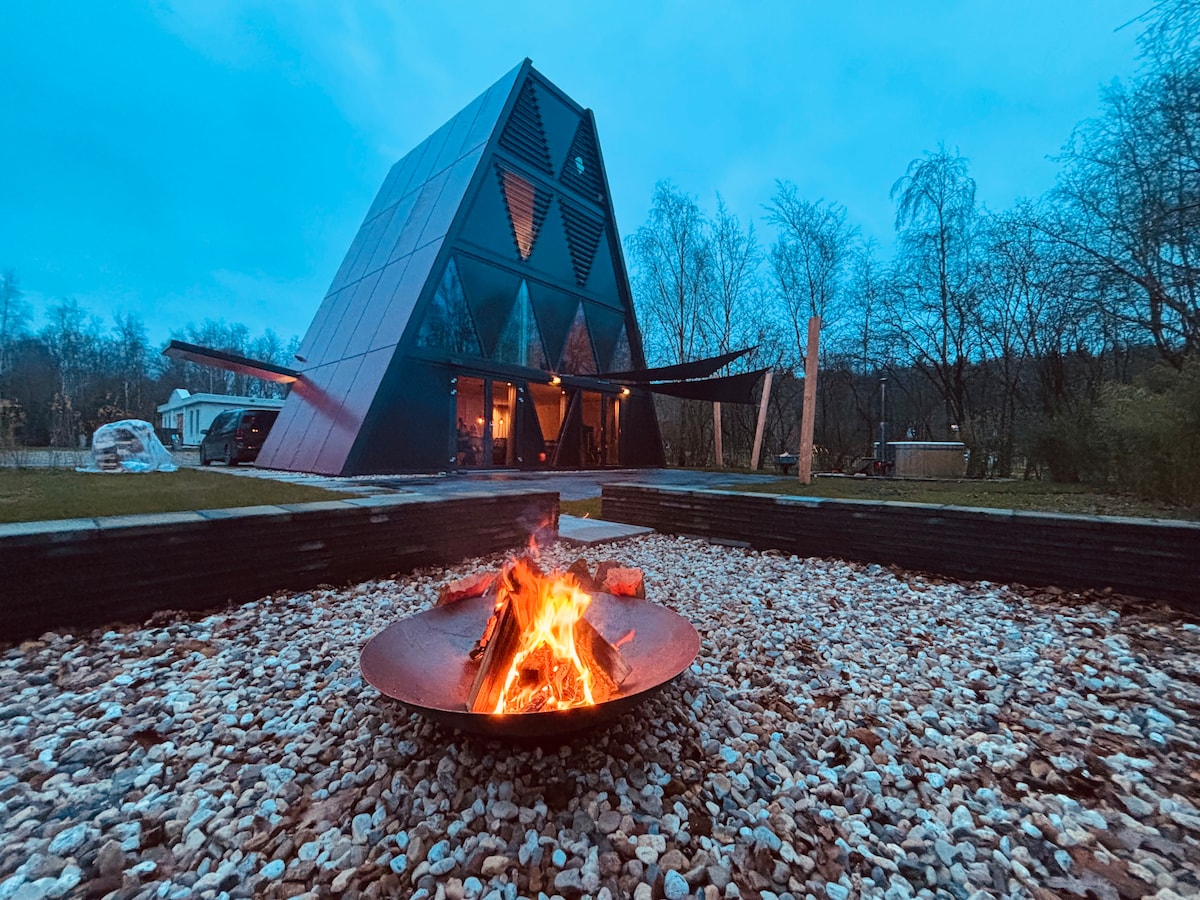 Naturelodge with hottub, wood stove and roof glass