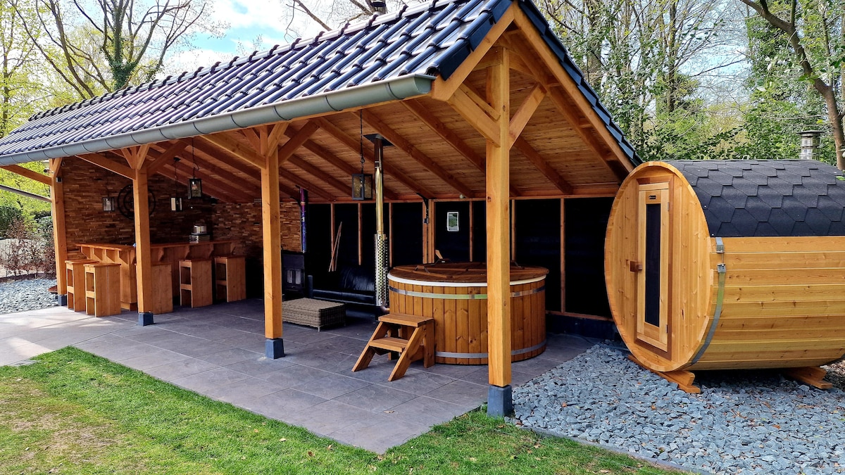 Com os braços abertos, recebemos você em nossa encantadora acomodação. A decoração é caracterizada pelo aconchego e aconchego caseiro. No jardim fechado há uma área de bem-estar privada com jacuzzi e uma sauna combinada (infravermelha e finlandesa) que é ilimitada. Aqui em Drenthe, onde o tempo parece desacelerar, criamos um retiro onde você pode escapar da agitação da vida cotidiana e desfrutar plenamente e relaxar.