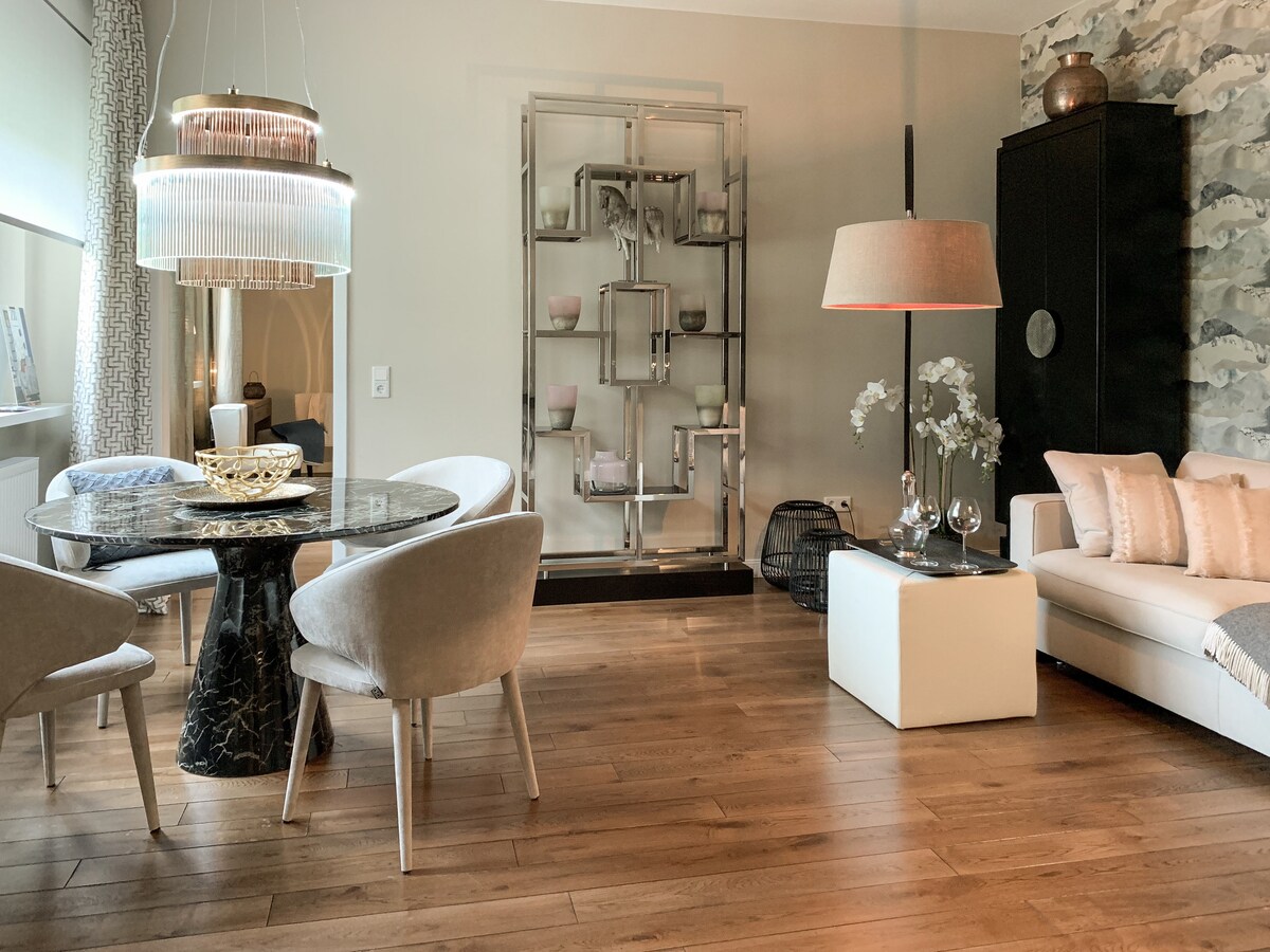 O apartamento recentemente renovado impressiona com o seu interior de alta qualidade e a sua localização única num planalto rochoso no meio da natureza e ainda perto da cidade. As melhores ligações de transportes e infraestrutura da cidade. W-LAN, máquina de lavar louça/máquina de lavar roupa e muito mais.
