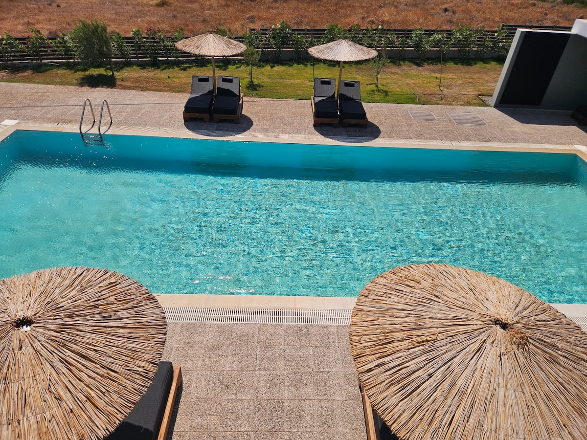 Martinis Boutique Hotel is a stylish retreat located in the heart of Ialysos, offering a perfect blend of comfort and elegance. The hotel features two distinct types of rooms to suit different preferences. Guests staying on the ground floor enjoy direct access to a shared pool, ideal for social relaxation and a refreshing swim. Meanwhile, the rooms on the first floor each come with a private jacuzzi, providing a more intimate and luxurious experience.