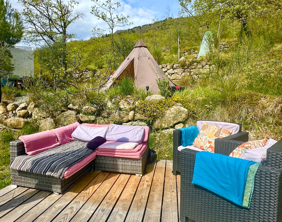 Bivouac de charme en grand Tipi proche rivière pour amoureux de la nature. Acces Jacuzzi privé Dans la vallée sauvage et préservée de la Thines, au cœur du Parc Naturel des Monts d'Ardèche, venez vous ressourcer au plus proche de la nature des Cévennes ardéchoises, en lien avec vous même. En contrebas coule la Thines, petite rivière cristalline, accessible en 5 mn par un petit chemin serpentant à travers bois, s'offrant à la baignade sur de petites plages privées. Ttes activités ardéchoises