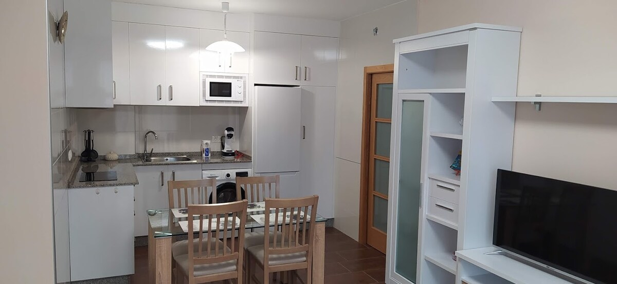 Apartamento bonito no 1.º andar sem elevador. Totalmente novo, localizado no porto e no centro de O Grove. Tem 1 quarto com uma cama de 150 cm, sofá-cama, toalhas, TV, Wi-Fi. sala de jantar, cozinha totalmente equipada com máquina de lavar louça, micro-ondas, frigorífico… Restaurantes, supermercado, farmácia, padarias e praia muito perto.