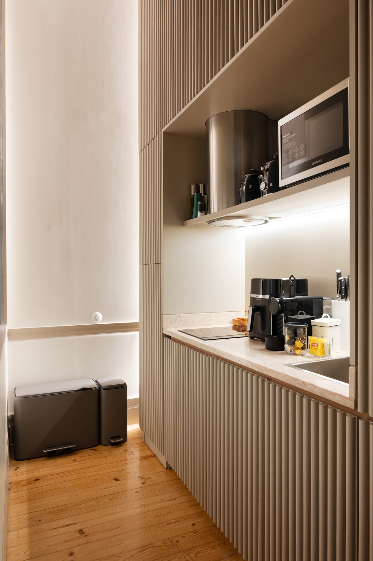 O apartamento (Cobertura) tem um terraço com jardim vertical, um quarto com uma cama de casal de 1,60 x 2,0 metros, guarda-roupas e um cofre. Uma sala de estar com sofá, TV 4K, canais a cabo e Netflix, sistema de som bluetooth Rotel e frigobar com bebidas gratuitas disponíveis para os hóspedes. Cozinha equipada com: micro-ondas, geladeira, máquina de lavar louça, fogão de indução, torradeira, chaleira e Nexpresso. Banheiro completo, incluindo bidê e chuveiro, secador de cabelo e comodidades (gel de banho, xampu e creme corporal), ferro e tábua de passar roupa.