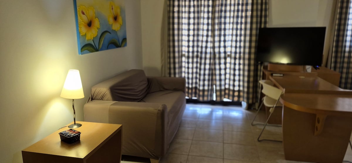Acomodação aconchegante no centro da cidade, bem próximo à hospitais, bancos, restaurantes, mercados, cartórios, teatro e pinguim. O Apartamento possui cozinha americana com geladeira, cafeteira, sanduicheira, micro-ondas e utensílios para pequenas refeições. Hospedagem para até 02 duas pessoas. Ao realizar sua reserva é necessário confirmar o número de hóspedes no período para perfeita acomodação. Sala com sofá e TV com canais abertos. Banheiro exclusivo (não possui itens de higiene pessoal)