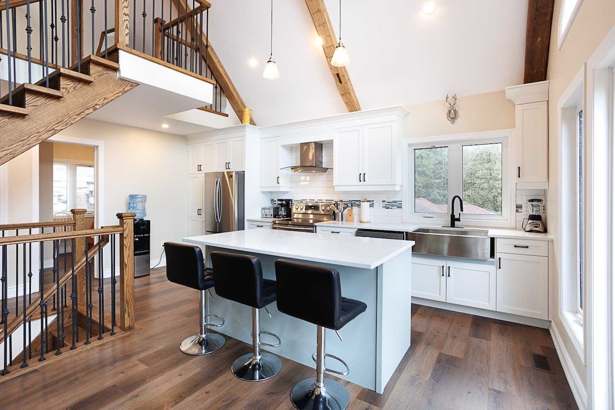 A apenas 1,5 horas da GTA, esta casa de campo de 4 camas e 2 casas de banho em Rice Lake é a escapadela de inverno perfeita. Desfrute de uma banheira de hidromassagem nova, lareira acolhedora, janelas de chalé com vista para o lago coberto de neve e um loft espaçoso. Perto de Brimacombe Ski Hill e rodeado por excelentes trilhos de esqui cross-country e raquetes de neve. Relaxe com o pôr do sol, noites estreladas na banheira de hidromassagem e tempo em família junto à lareira.