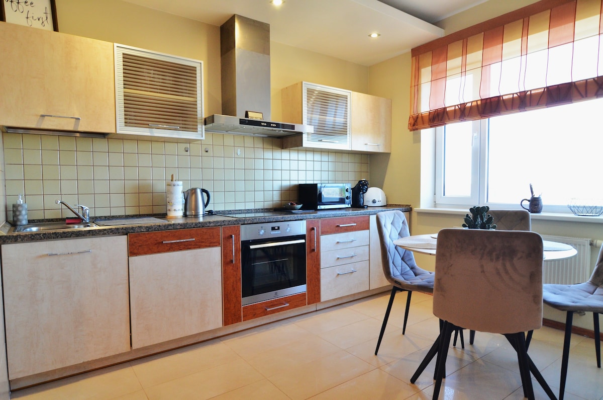 Apartamento acolhedor está localizado no centro da Cidade Velha, perto do rio Dinamarquês, com cais perfeitamente equipados para descansar, ao lado de cafés, restaurantes, castelo de Klaipeda, outras atracções, Balsa velha para o Curonian Spit.