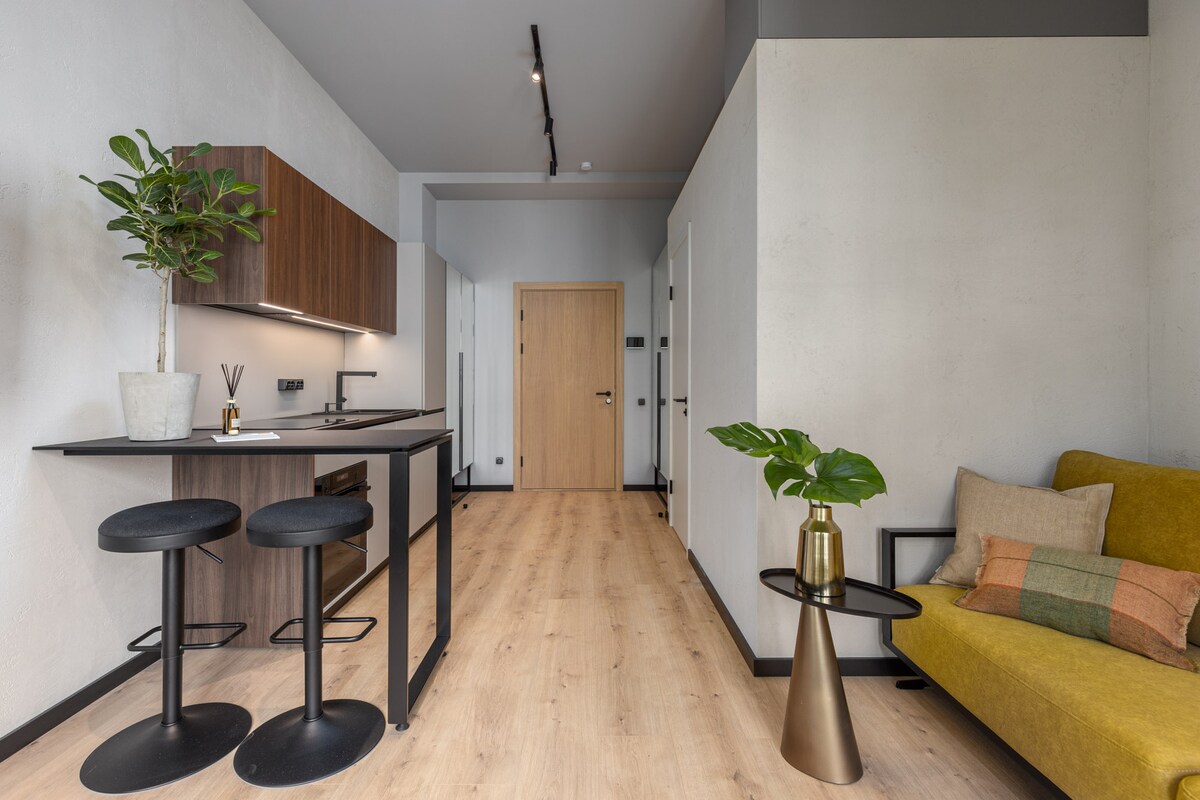 Damos-lhe as boas-vindas ao Riga Loft! Fique no nosso apartamento moderno e elegante com um quarto separado e um loft no coração de Riga. Com um design elegante e mobiliário moderno, este espaço inclui uma cozinha totalmente equipada, 2 áreas de quarto, uma casa de banho moderna e uma área de estar confortável com vista para a Rua Krisjana Barona. Localizado no vibrante centro da cidade, estará a poucos passos de cafés, restaurantes, lojas e ginásios. Experimente conforto e conveniência modernos ao seu alcance!