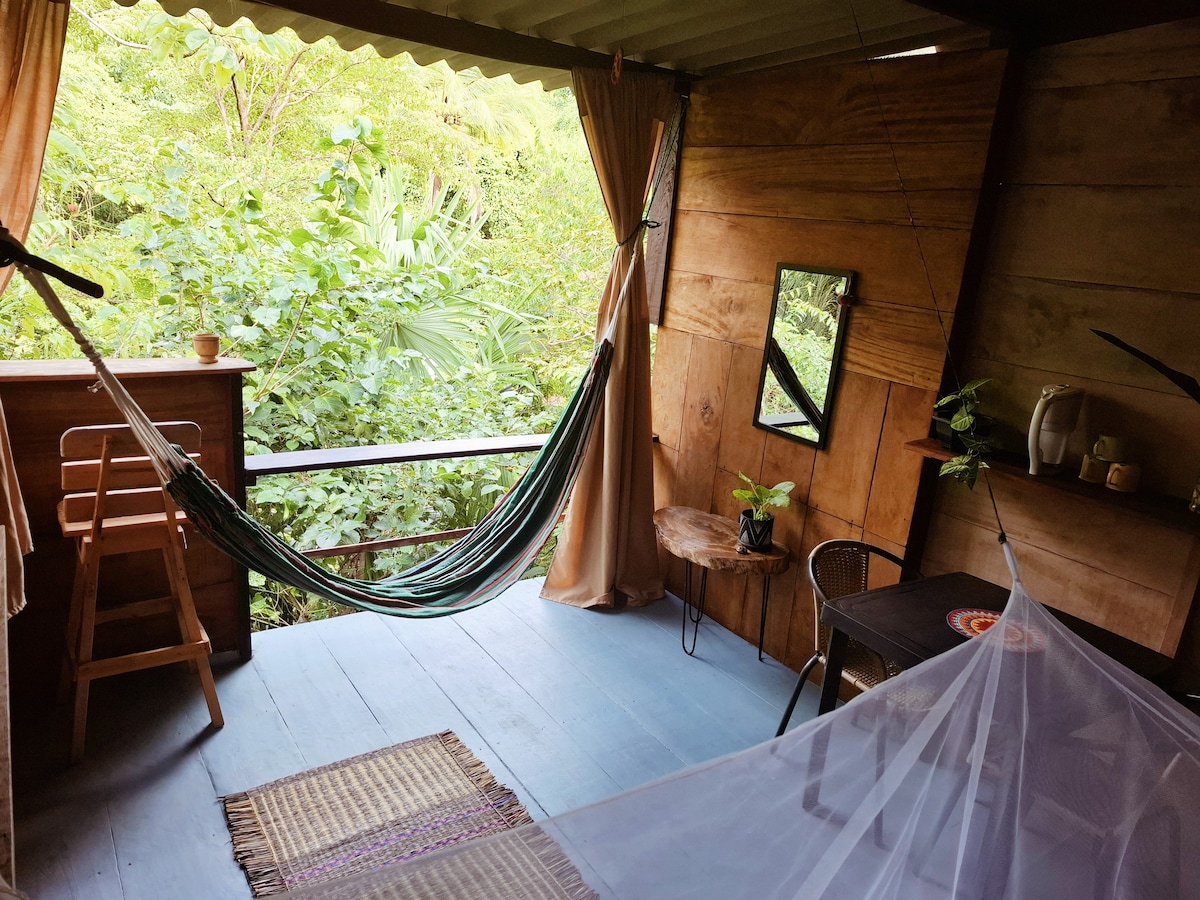 A nossa casa é ecológica, confortável, privada e muito acolhedora. Localizado num paraíso natural no oceano e rodeado por floresta tropical. Se é um amante da natureza, está no lugar certo... Praia, pássaros, macacos, vistas exuberantes e meditação em privacidade e tranquilidade, ideal para relaxar. Estamos equipados com painéis solares que garantem uma fonte de alimentação contínua e ininterrupta para uma estadia sem preocupações. O Wi-Fi também está sempre disponível.