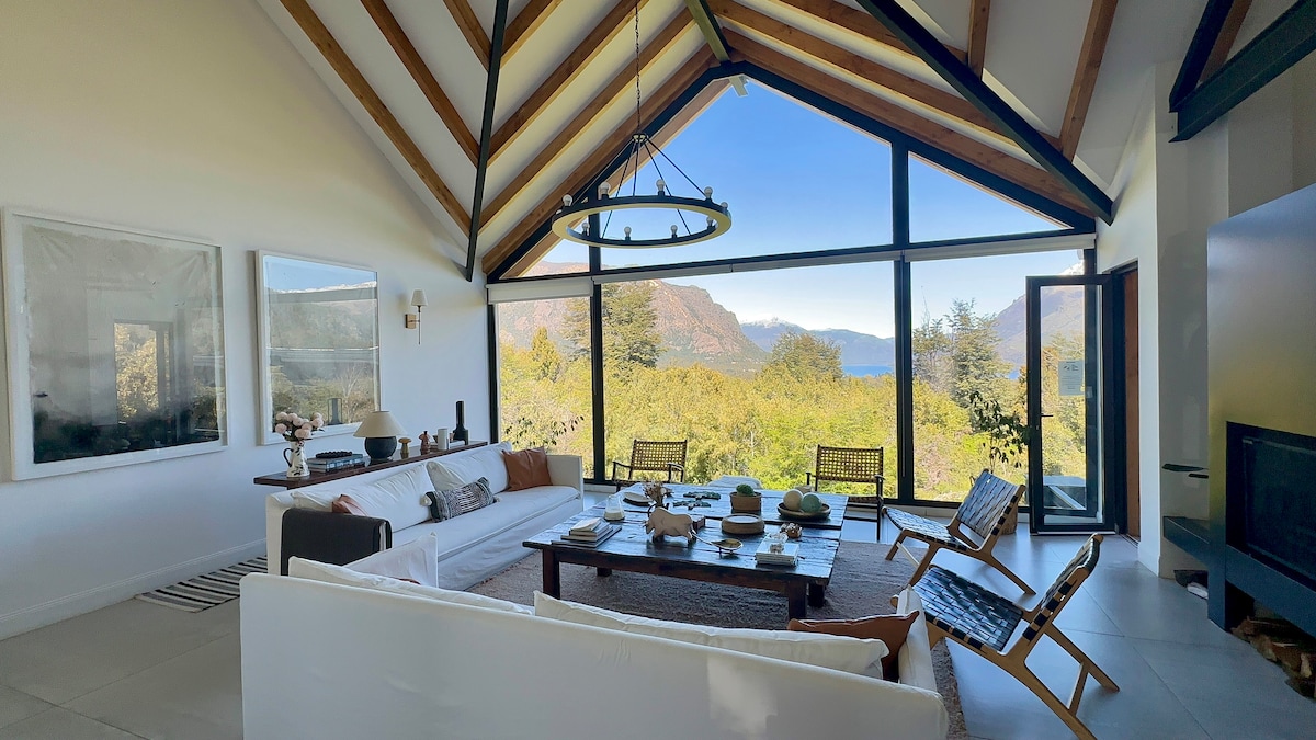 Enjoy the scenery in this beautiful, modern 220 m² house with a garden and excellent 360º views of Lake Nahuel Huapi, the Andes Mountains, and the steppe. It is very bright, has central heating, thermal panels, and insulated walls, ensuring an ideal temperature in winter and summer. It features ample space and excellent amenities. We adapt to your needs, so rooms with single beds can be converted into double beds. Our solar energy ensure internet, heating and electricity when power goes out.