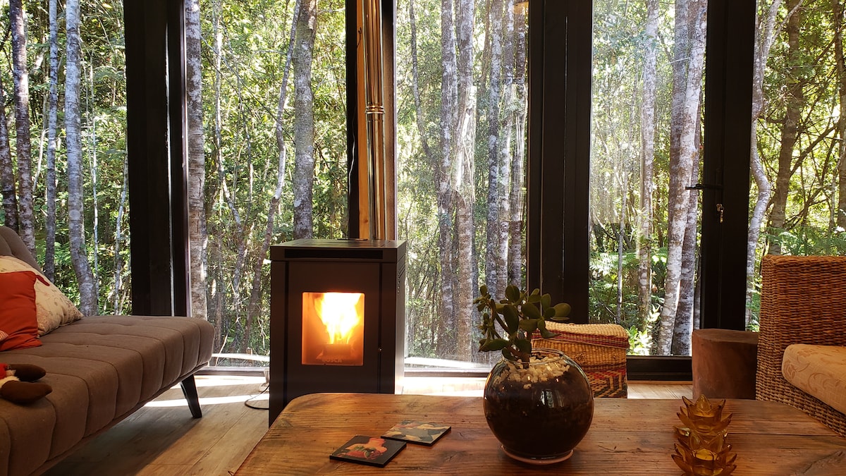 Venha desfrutar de relaxamento e descanso na nossa cabana no bosque, cercada por árvores nativas e vida selvagem variada, onde você ouvirá o chilrear do Chucao e do Diucón, entre outros. Você pode fazer caminhadas com vista para os vulcões Osorno e Calbuco. Perto do Parque Vicente Pérez Rosales, Lago Todos Los Santos, Saltos de Petrohué, Vulcão Osorno, entre outros. Diversidade de atividades esportivas, como trekking, ciclismo, caiaque, tirolesa ou simplesmente desfrutar de uma caminhada.