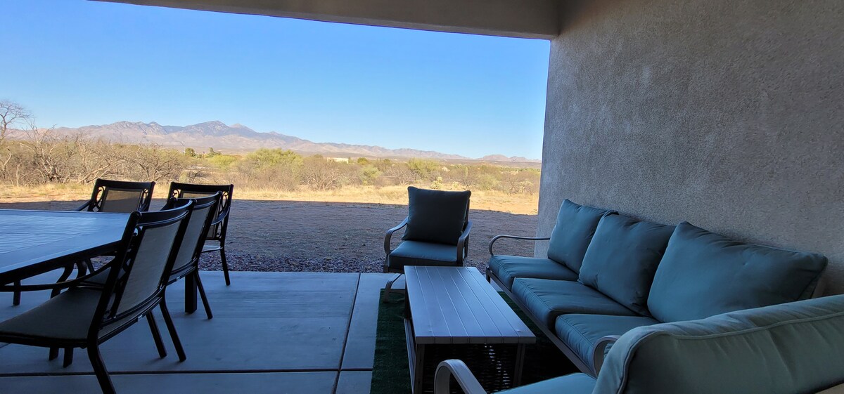 ESPAÇO PRIVADO! 105 $ por noite SEM TAXAS DE LIMPEZA, mas a Airbnb cobra as suas próprias taxas. Cama king, janela panorâmica, sofá, portas francesas, lareira elétrica, pátio privado, pátios, jardins, nascer do sol sobre Patagonias, pôr do sol atrás de Atascosas. Paraíso para observação de aves. Ótimo para caçadores, caminhantes. Lago a minutos com aluguer de barcos, natação, pesca, caminhadas, pequena praia. Fácil viagem para Tombstone, AZ Trail, Tubac, campo de golfe, cavernas Kartchner, Patagónia, México, degustação de vinhos e bebidas espirituosas. Check-in/check-out flexível.