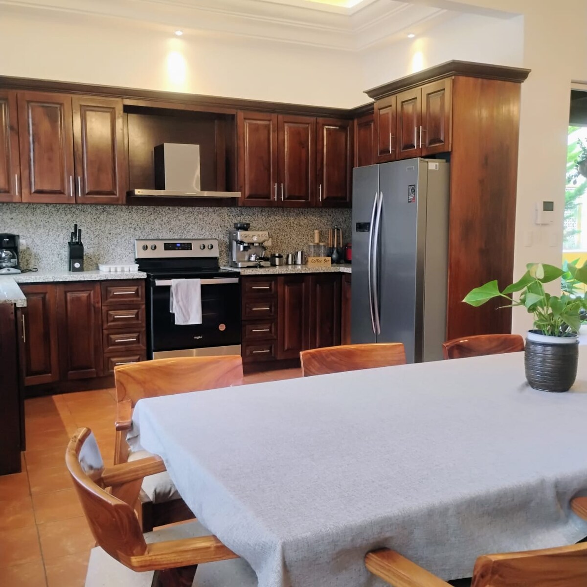 Este espaço elegante para uma estadia é perfeito para viagens em grupo. Crie memórias inesquecíveis neste alojamento único. Tem uma piscina circular privada com uma fonte de piscina com design único. Tem espaço para 12 pessoas e está localizado numa das melhores áreas residenciais de La Antigua. A casa foi concebida com um design colonial e elegante. Tem 4 quartos espaçosos com casa de banho privativa cada, tem 6 camas e um apartamento luxuoso totalmente equipado.