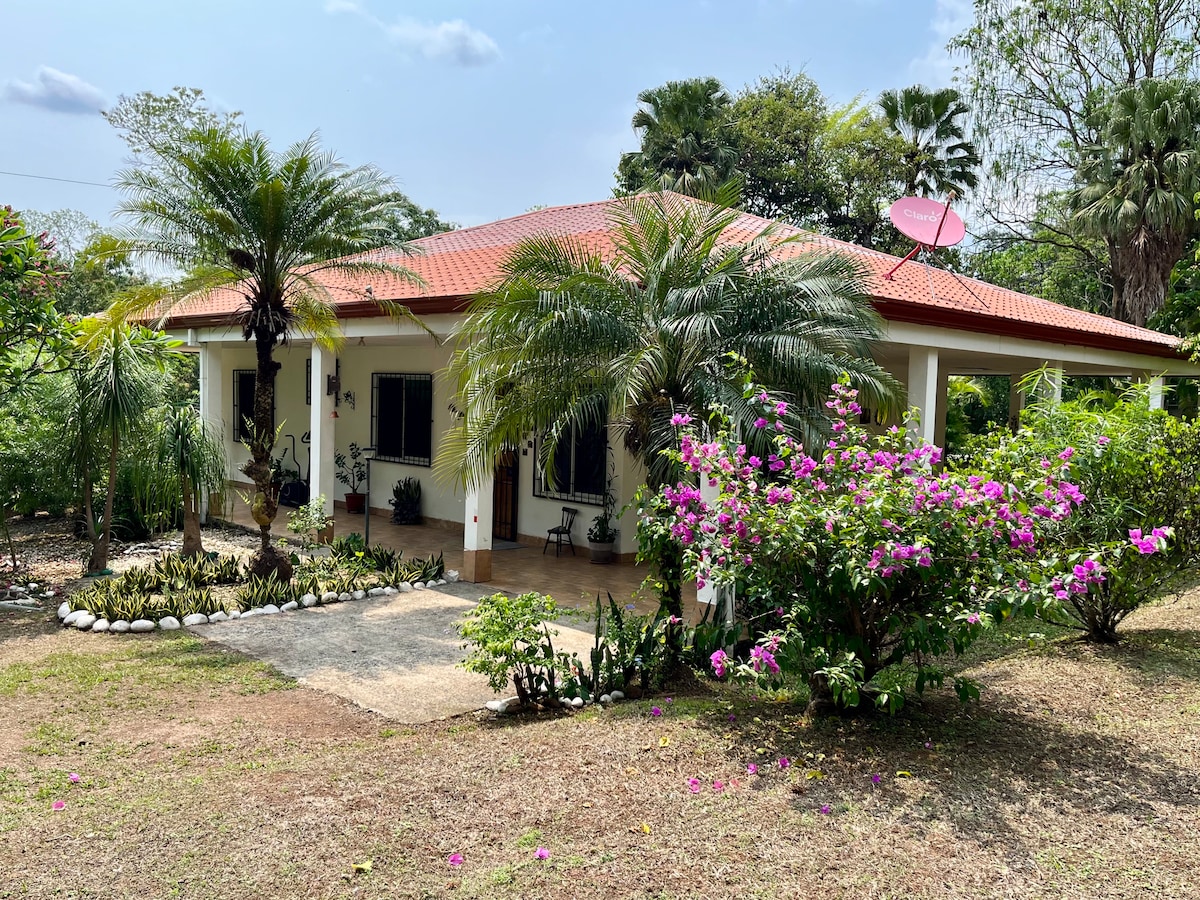 Beautiful place to rest. Little house with all the comforts, BBQ area, swimming pool and beautiful green areas. Just 10 minutes from the center of Orotina, where there are all kinds of services; half an hour from Caldera and Doña Ana beaches, and 50 minutes from Mantas, Herradura and Jacó beaches, as well as downtown Puntarenas; and in summer you have to enjoy the cool waters of the Turrubares River, just 10 minutes away. Fiber optic internet service, with speeds of over 260M on 5G