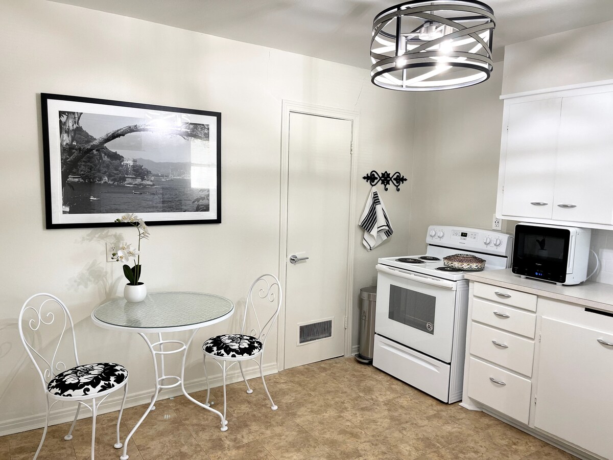 Enjoy your stay in Stephenville at our peaceful and stylish studio apartment. Located on our property, you'll have access to our private backyard and all of its amenities including a workout space, koi pond, fireplace and grill. This newly built space (April 2023) is furnished with brand new appliances, a full kitchen, refurbished wood floors and high ceilings. Within walking distance of Tarleton State University, it is ideal for parents or alumni. We look forward to your stay!