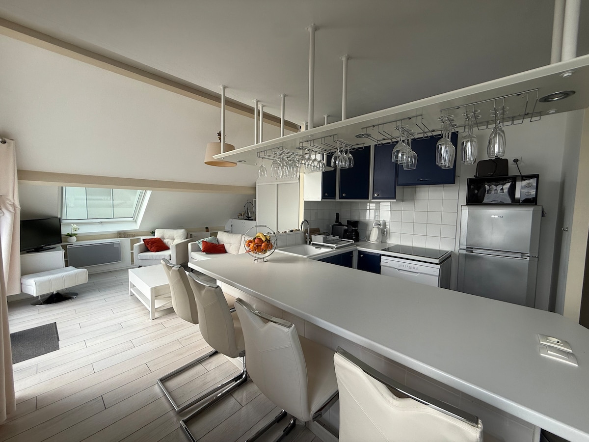 Espaçoso, decorado com chique e sobriedade, este duplex localizado no 3º andar, irá surpreendê-lo com a sua vista deslumbrante. O espaçoso terraço irá convidá-lo para almoços de convívio (churrasqueira, mobiliário de jardim e poltronas) e estará sob o feitiço do pôr do sol, oferecendo-lhe uma paleta extravagante de cores. Para o seu conforto, é fornecida roupa de cama: toalhas e toalhas de chá, bem como lençóis disponibilizados gratuitamente. Cozinha equipada. A poucos metros da praia
