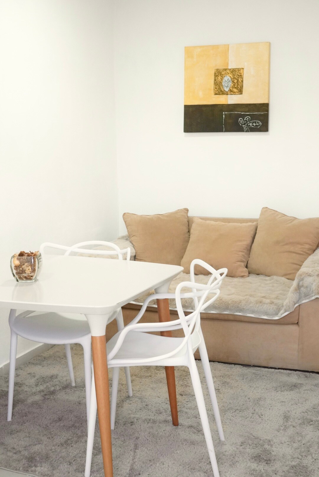 Apartamento, luminoso, ubicación estratégica. Cuenta con 2 dormitorios con balcón hacia la calle, vistas al centro comercial de la ciudad. Totalmente equipado, AA split frío/calor en ambos dormitorios, mantas adicionales. Sommier de 2 plazas en un dormitorio y 2 sommier de 1 plaza en el segundo dormitorio. WiFi y smart TV. Cocina equipada con microondas, anafe, heladera, hervidor eléctrico y cafetera. Vajilla y utensilios de cocina. Se proveen sábanas y toallas. Baño: bidet y secador de cabello.