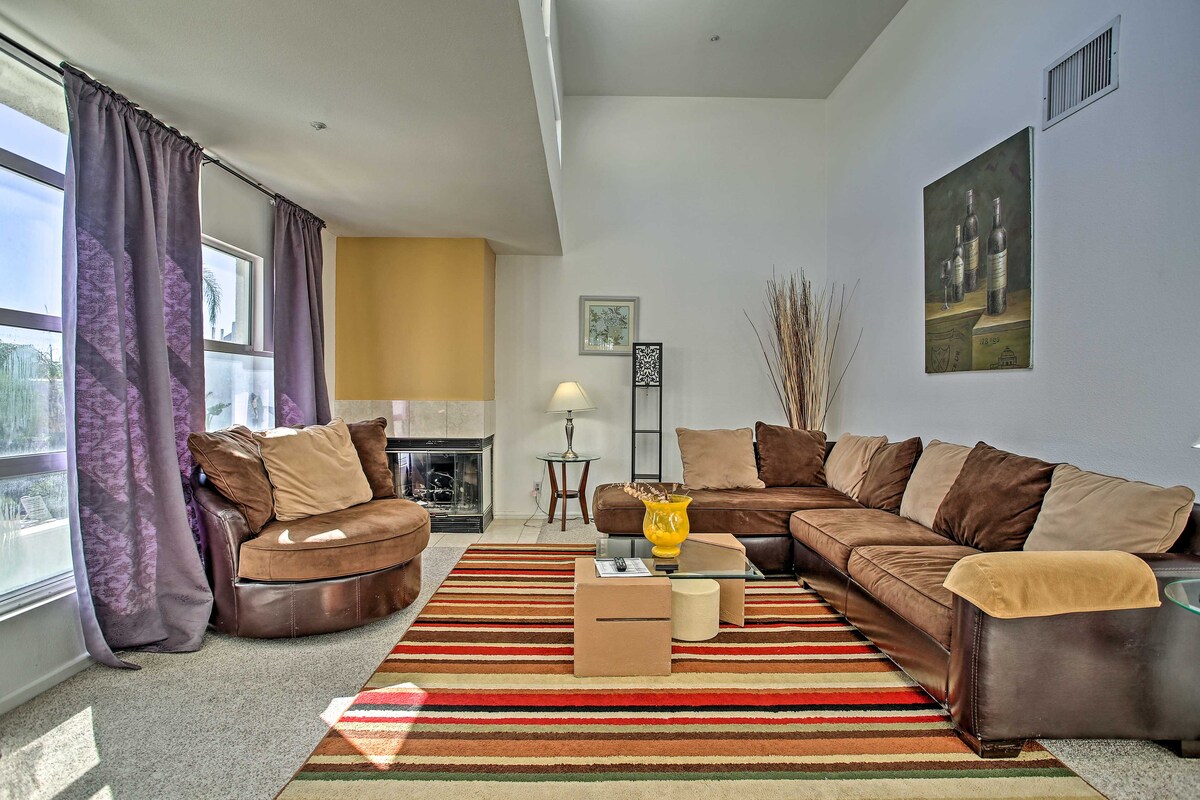 Desert escape in a private community with mountain views, resort amenities & fast 1G Wi-Fi. ★ "Beautiful, conveniently located, and exactly as nice as it looked online." ☞ Patio w/ BBQ + outdoor dining ☞ Resort access: tennis, gym, golf course, pool, pickleball ☞ Multiple smart TVs (living + bedrooms) ☞ Fully equipped kitchen ☞ Garage and driveway (4 cars) ☞ 1GB Wi-Fi + workspace ☞ Onsite washer/dryer ☞ AC + heating 》10 mins → DT Palm Desert (cafés, shopping, dining) 》20 mins → Coachella
