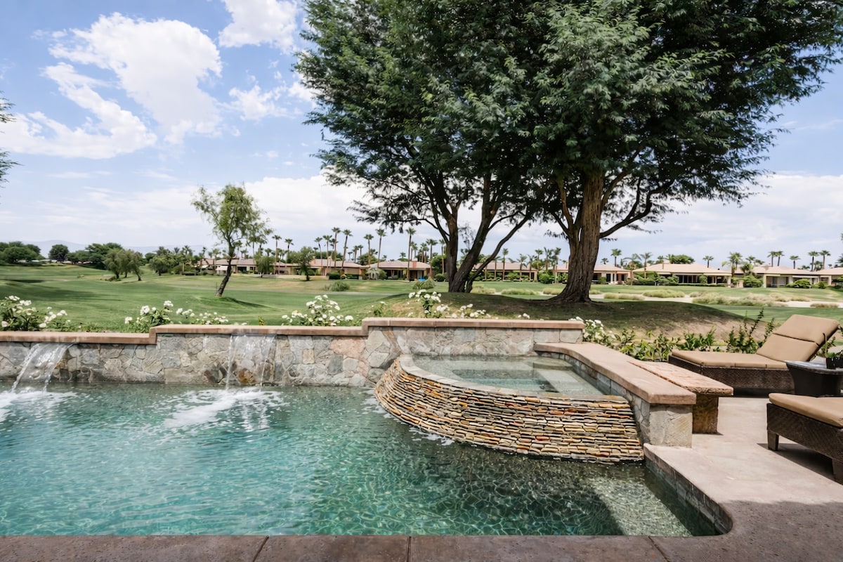 Estúdio acolhedor com entrada privativa e pátio, piscina e spa, golfe ao redor, 8min - Tennis Gardens, 12min - Acrisure, localização vencedora! No coração de uma cidade, mas em um bairro tranquilo com muito estacionamento na rua. 10 minutos a pé: Albertson 's, TraderJoe' s, posto de gasolina, lavanderias, salões de cabeleireiro e unhas e alguns restaurantes. Dirigir rápido: Lojas de luxo, galerias de arte, restaurantes e bares em El Paseo, Acresure Arena, McCollum Theater, Tennis Gardens, Golf, Chella, Stagecoach, Living Desert Zoo, Casino