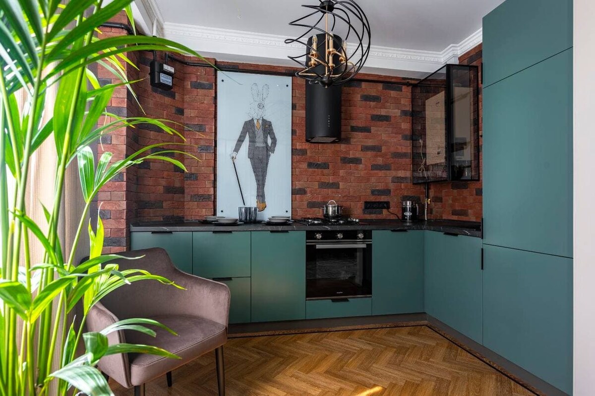 Um apartamento elegante no centro, projetado em estilo escandinavo com móveis vintage e arte moderna. Está localizado a 15 minutos a pé da praia e a 10 minutos do parque central, cercado por muitos restaurantes e bares. Um edifício pré-revolucionário com um pátio acolhedor de Odessa. O apartamento dispõe de um quarto separado com cama de casal e um sofá-cama confortável na sala. O apartamento está totalmente equipado com tudo o que você precisa.