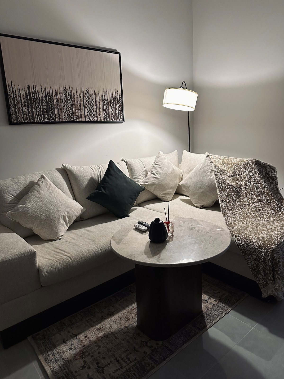 🟢 An Elevated Standard of Hospitality: The listed rate is fully inclusive. The 15% VAT is courteously covered by the host for a refined and effortless stay. 🏡 The apartment is a spacious one-bedroom with a living room, featuring a cozy and calm design Located in the heart of Riyadh, specifically in Al-Muruj district, it’s just minutes away from KAFD, Boulevard Riyadh, Boulevard World, and the Metro station, with quick access to major roads and key city landmarks.