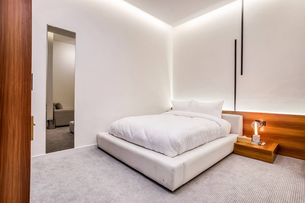 Um estúdio elegante e integrado com um design moderno e uma divisória de madeira que dá privacidade entre dormir e sentar. Ingredientes: Cama principal com colchão luxuoso - Uma área de estar atrás de uma divisória de madeira com um sofá e uma mesa de apoio - Um recanto de hospitalidade com máquina de café, chaleira, chávenas, café e chá. - Cozinha pequena com frigorífico, micro-ondas, pia e armários. - Casa de banho espaçosa com chuveiro de efeito chuva e comodidades básicas. Serviços: - Wi-Fi de alta velocidade - Ecrã inteligente LG - Hospitalidade com 3 tipos de café e chá. Localização: Aeroporto King Khalid: 20 minutos - Riyadh City Boulevard: 6 minutos - Boulevard World: 6 minutos Kingdom Arena: 6 minutos